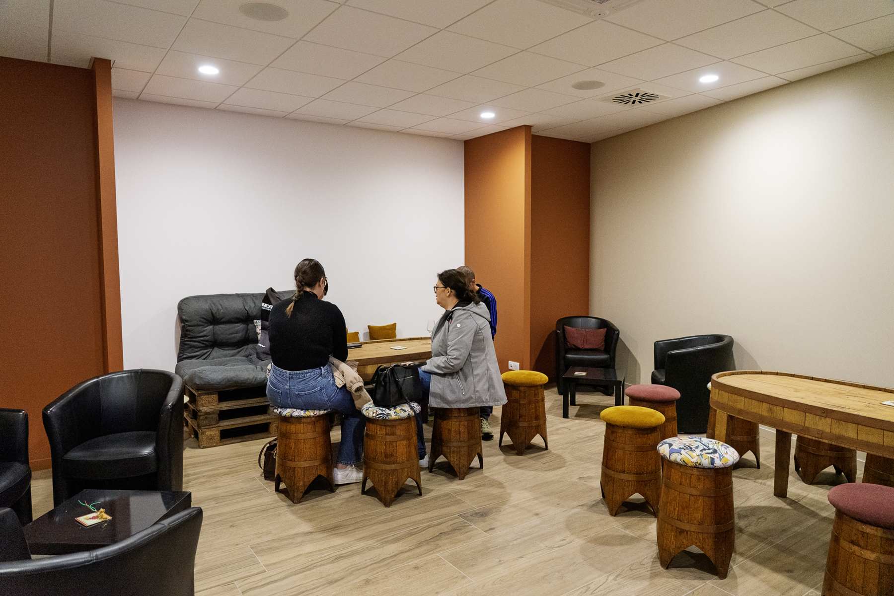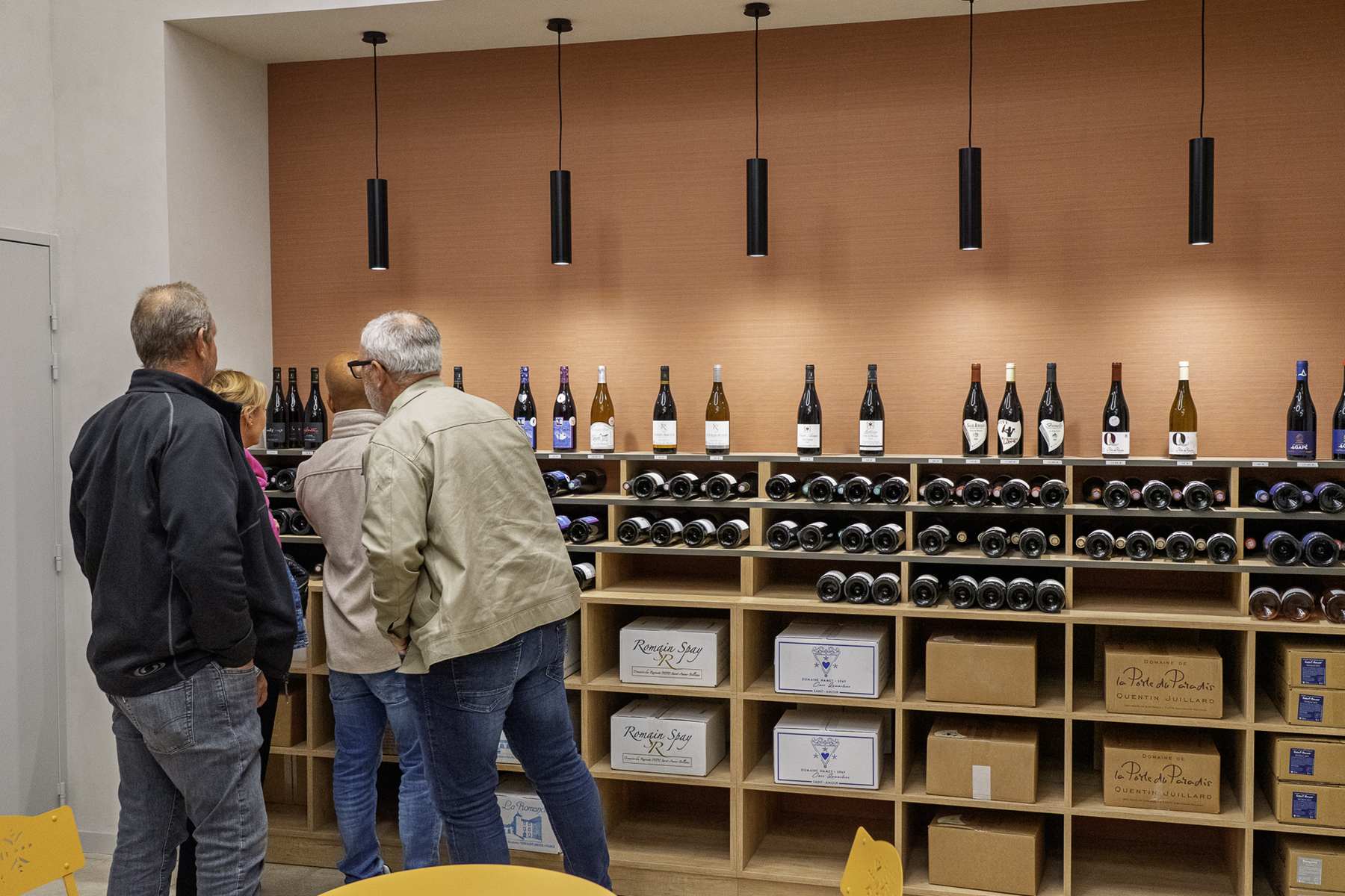 Ce sera donc la création d’un Bar à Vins, où, en plus de la vente à emporter, on peut consommer sur place, pour cela, l’espace de stockage mitoyen a été transformé en salon. Chaque coopérateur y dispose d’un casier, dans lequel il peut mettre son vin en avant.
