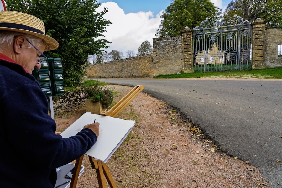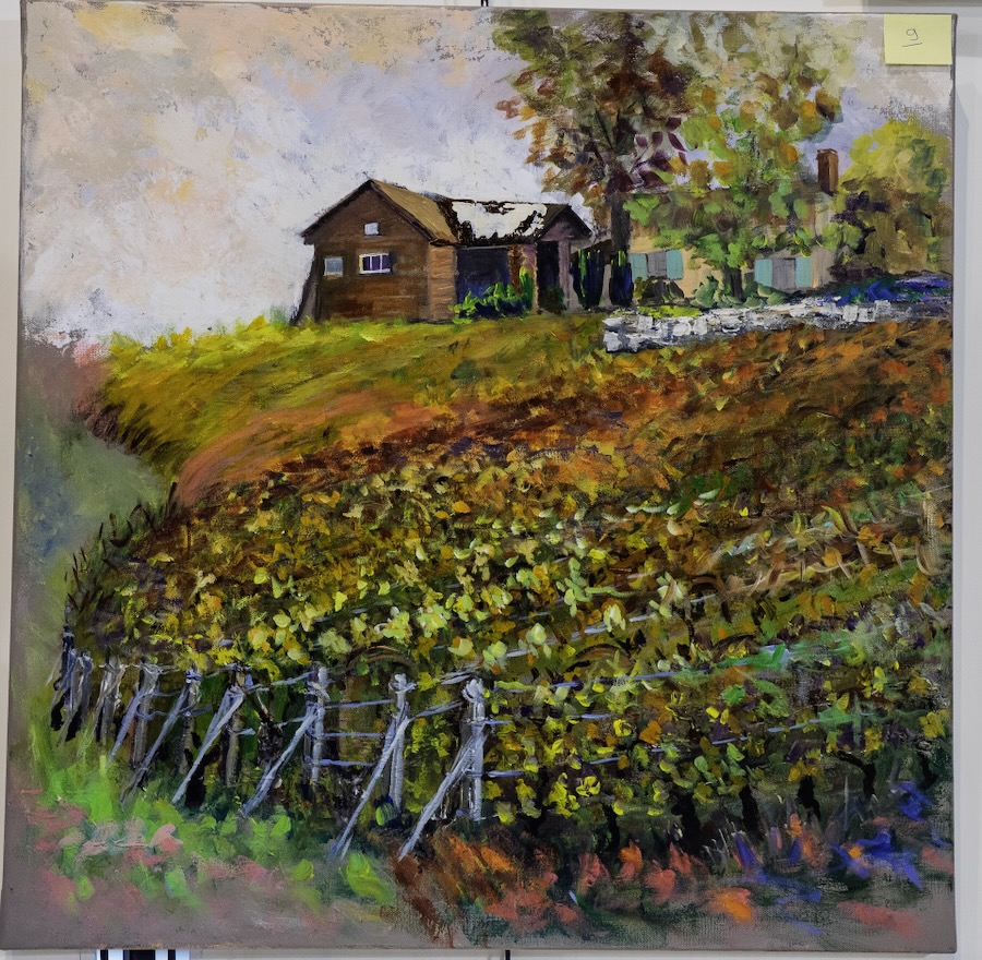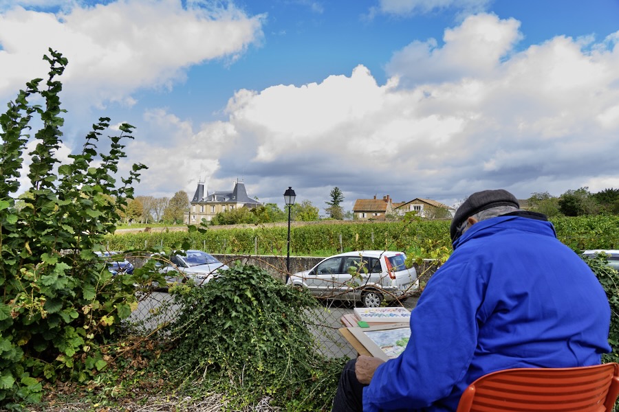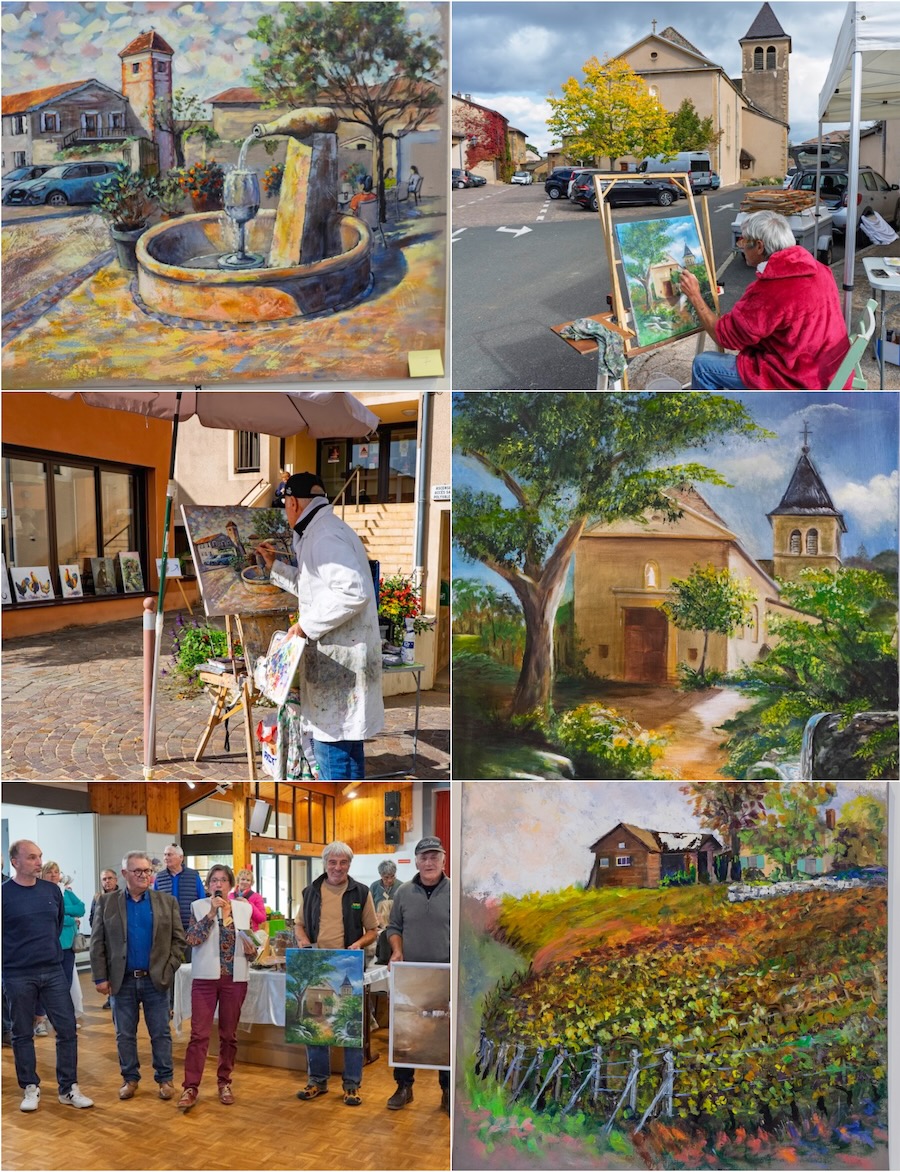 La météo du matin n’était pas engageante, mais finalement la journée s’est déroulée sous un ciel clément. Les 13 peintres, invités par Cantriaca, ont pu installer leurs chevalets dans les ruelles et chemins de Chaintré, comme le veut le concept de Peintres dans la Rue.