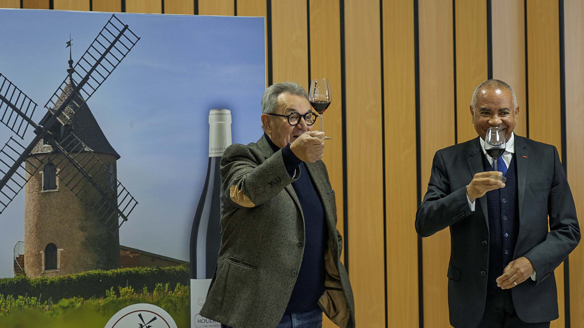 - Le Préfet Dominique Dufour, en premier, a prêté serment et s’est acquitté de la lourde tâche de boire le jus de la treille dans une « tasse aux énormes dimensions. »