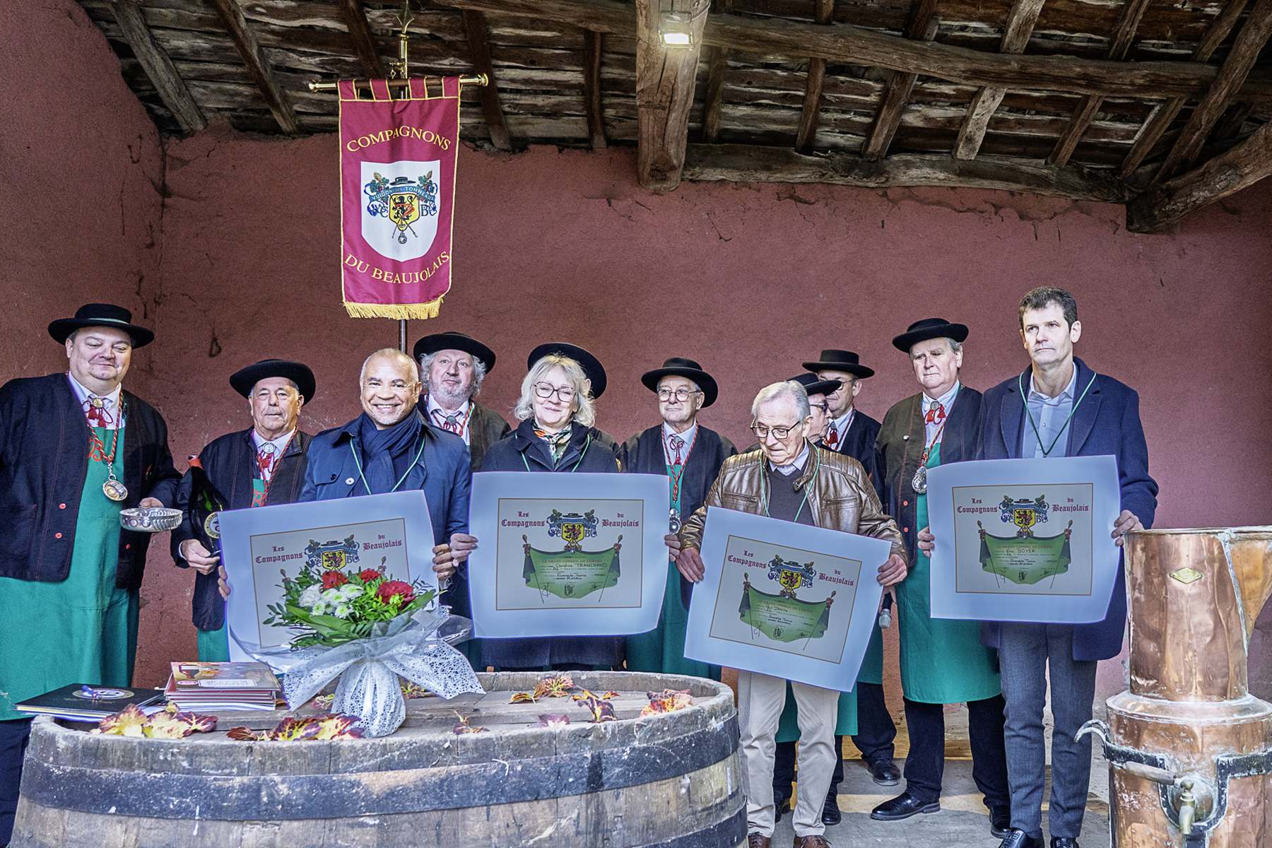 -Ce fût enfin le grand moment des intronisations. Tour à tour, les 4 récipiendaires de cette 163ème édition de la « Fête Raclet » se sont prêtés au rituel orchestré par le Grand Chambellan puis le Grand-Maître du Chapitre des Compagnons du Beaujolais.