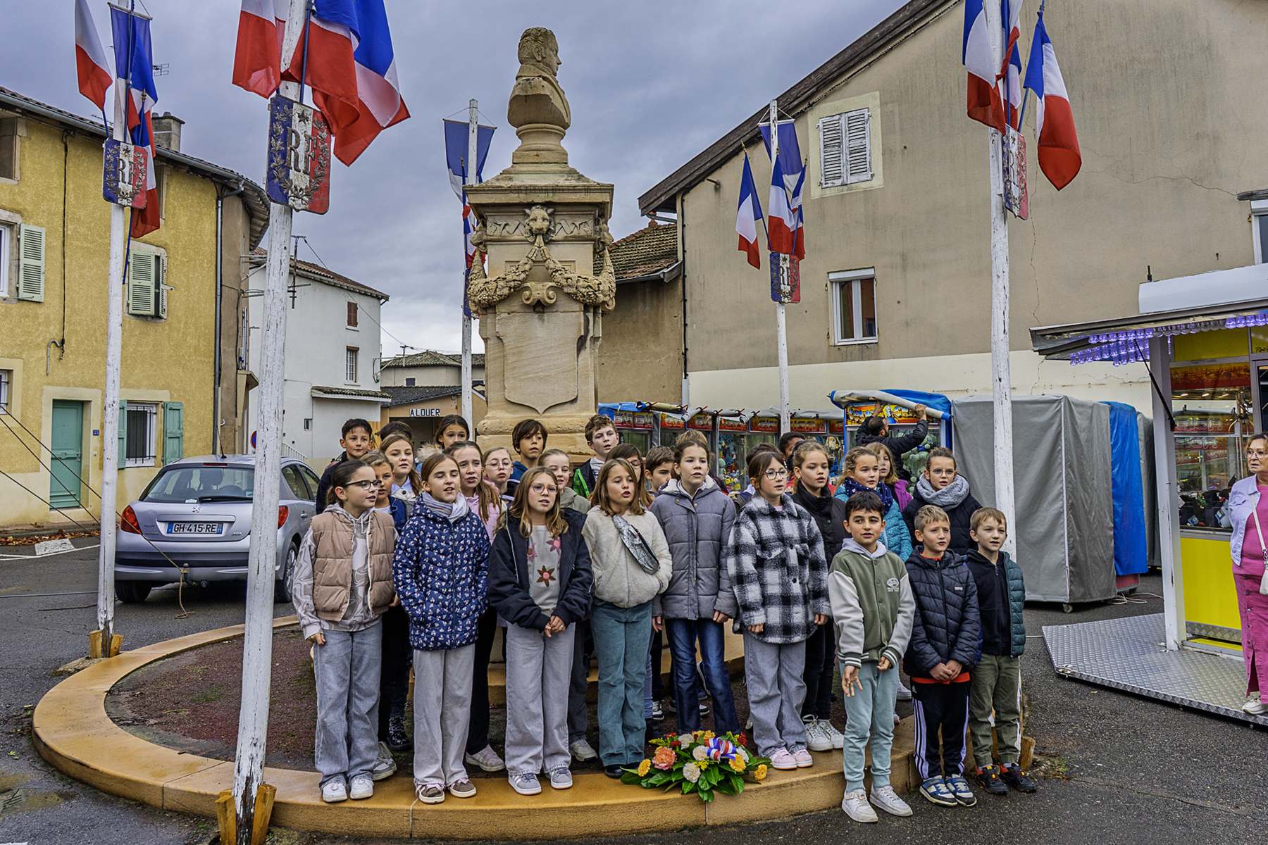 Avec 15 petites minutes de retard (¼ d’heure Beaujolais oblige), le traditionnel défilé s’est mis en route, fanfare en tête, suivie des enfants des écoles, des personnalités et du public, pour rejoindre le centre bourg en remontant la rue de la Petite Sionnière.