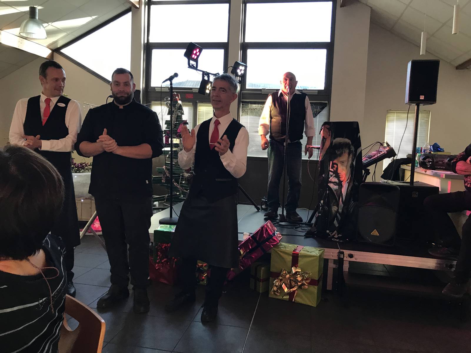 L'ambiance était à son paroxysme car un repas sans musique reste terne, et le moment est venu de dévoiler celui qui, tout au long du repas, a transporté l'assistance par un panel de chansons choisies entre autre, par les invités, celui qui a mis le feu, qui a fait danser, frapper des mains , chanter, gesticuler, notre Rocker mâconnais , Claude BLOCH et ses chanteur et chanteuses.