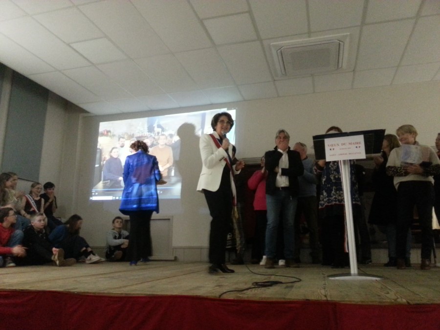 À la salle des fêtes, un public nombreux est venu ce soir assister à la dernière présentation des vœux de la maire de Saint-Amour-Bellevue, Josiane Casbolt. MM. le député Benjamin Dirx (1ère circonscription de Saône-et-Loire), Hervé Carreau (représentant J.-P. Courtois, président de MBA), Jean-François Cognard (conseiller départemental) et le président du SIVOM étaient également présents.