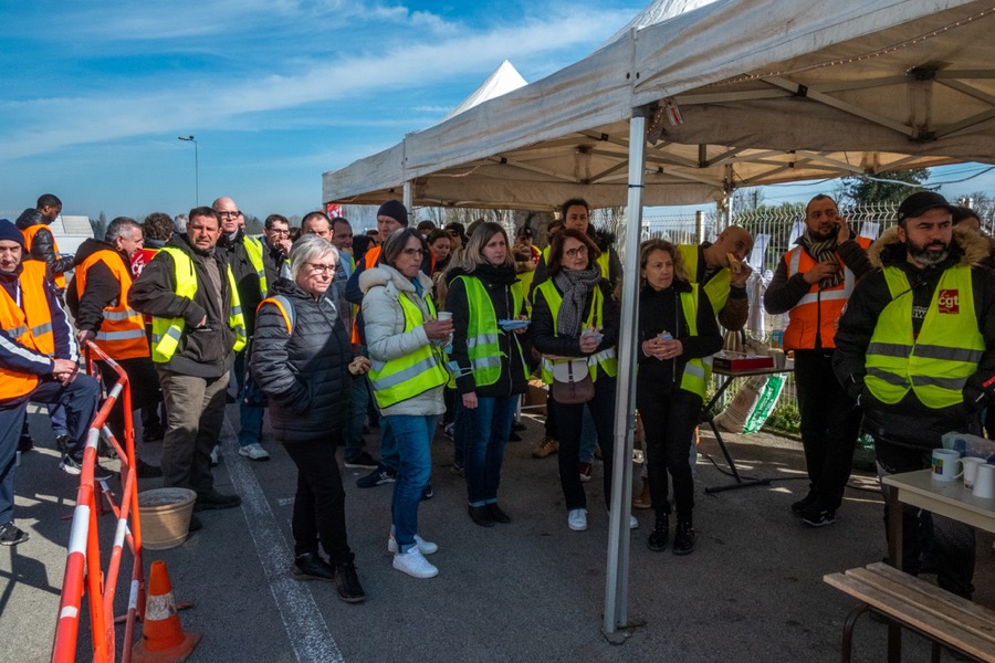 Autre niveau sur nos 119 employés de Saint-Martin-Belle-Roche, présence sur le site même en grève générale jusqu’à ce soir minuit. »
