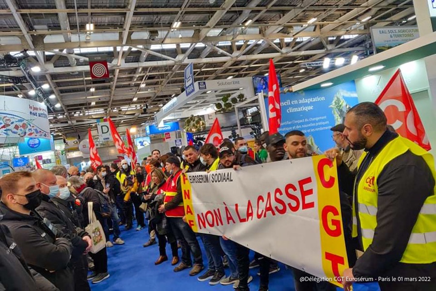 La mobilisation aujourd’hui s’établit sur deux niveaux, une partie des salariés est partie sur Paris, une quarantaine, nos collègues manifestent avec nos camarades de CANDIA, des personnes de YOPLAIT, du personnel EUROSERUM d’autres sites, ainsi un total de 200 personnes environ au salon de l’agriculture et, ensuite, devant le siège social de SODIAAL.