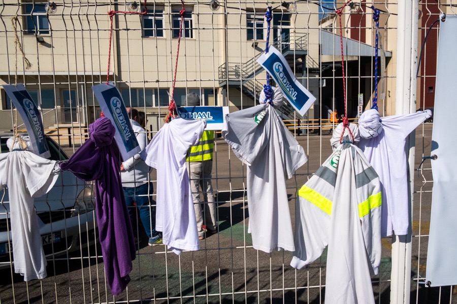 Des chauffeurs de poids-lourds de passage sur l’ancienne nationale, la D906, des chauffeurs de voitures particulières ou professionnelles beaucoup klaxonnant au passage le long des grilles du site repérable avec les énormes banderoles annonçant le mouvement en cours et les 119 poupées matérialisant les 119 futurs licenciés potentiels, voilà l’ambiance d’un passage sur place en fin de matinée sous un soleil printanier et un ciel bleu magnifique peut-être annonciateur d’une prise de conscience des directions du groupe SODIAAL de l’incongru d’une telle décision affectant tant de familles, d’enfants.