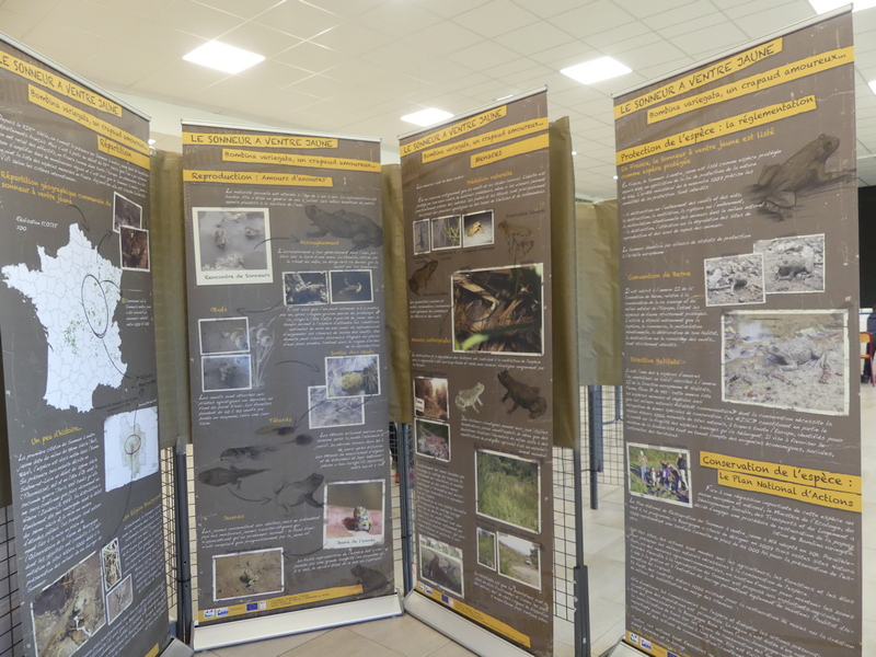 Le Grand site de France Solutré Pouilly Vergisson a prêté des documents sur la construction des murs en pierre sèche et Natura 2000 Bourgogne Franche Comté Nature, des panneaux sur le Sonneur à ventre jaune, un crapaud qui vit dans notre région.
