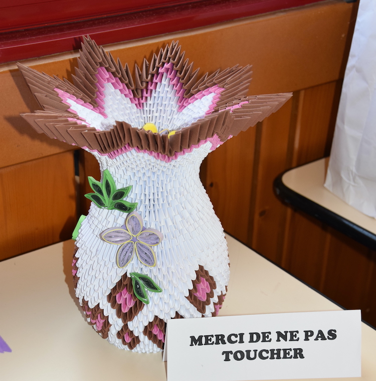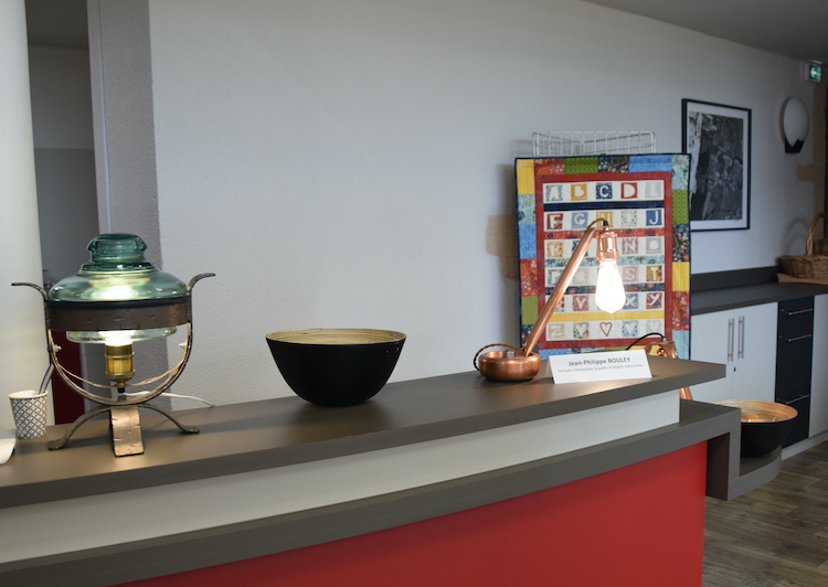 Jean-Philippe habitant de Charbonnières, en récupérant des bouts de métaux, fabrique des lampes originales. Origami, quilling (travail avec bandelettes de papier), calligraphie, patchwork, raku (technique japonaise d'émaillage), collages, toutes ces activités manuelles font le bonheur des petits et des grands.