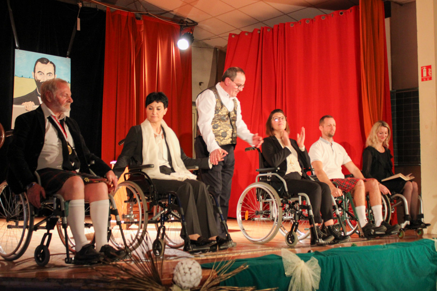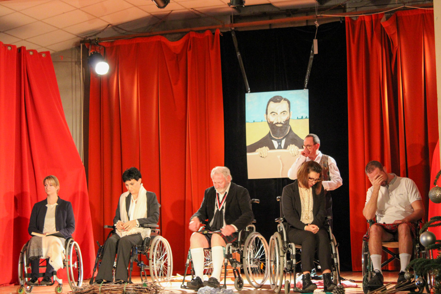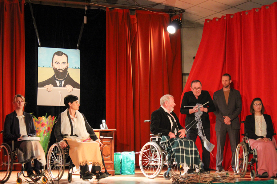 L’histoire atypique de cette famille CHAPELCROSS, qui évoque les bipèdes et les personnes à Mobilité Réduite, ne laisse pas le public sans réaction. Le public est plongé dans une ambiance ambivalente et troublante, mais oh combien humoristique.