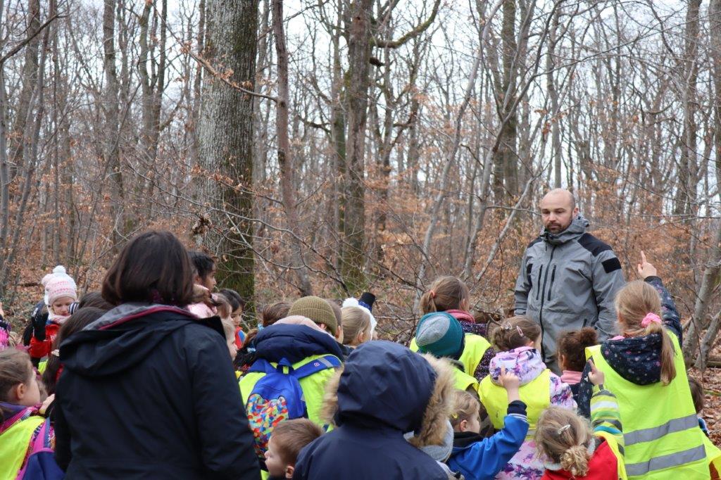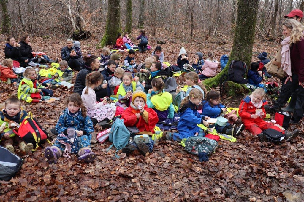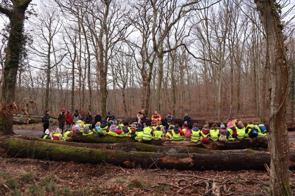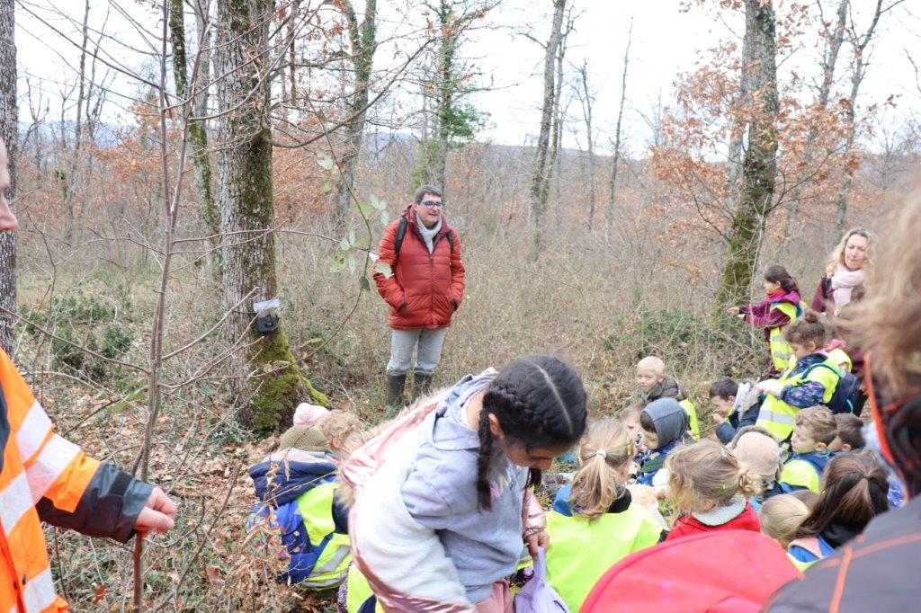 Depuis la rentrée 2023, et quelles que soient les conditions météo, les élèves des classes de CP, CE1, ainsi que les trois sections de maternelles, partent une fois par semaine à la découverte de la forêt.