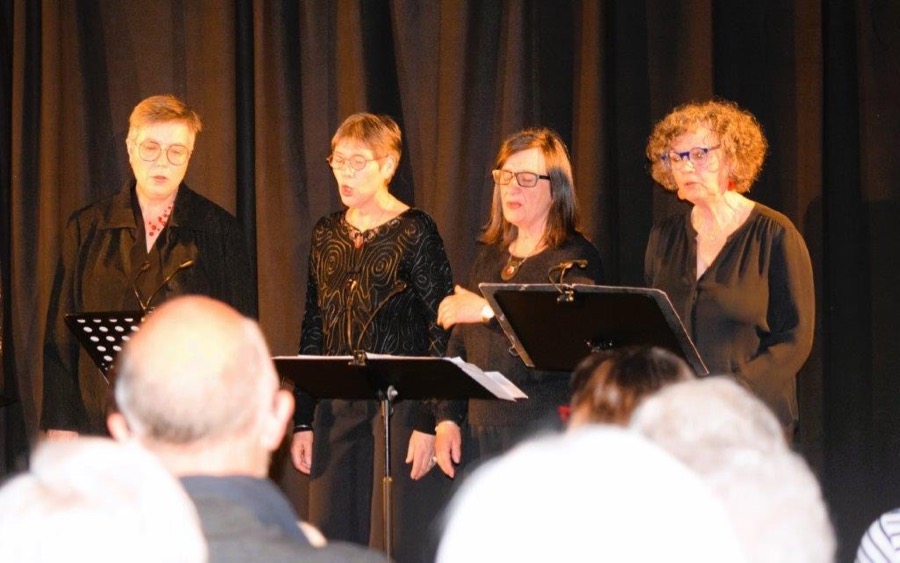 Après Nicolas Pallot à La Salle, le théâtre du Petit Chêne et I Sentieri à Senozan, c’est l’ensemble vocal mâconnais Emané qui clôturait la saison 2024. Cette chorale , née en 2019 suite à une demande de chanteuses et de copines voulant chanter, rassemble onze voix féminines, avec Catherine Dumousseau-Burthier en cheffe de cœur ; la bonne centaine de spectateurs a été envoûtée : « C’est calme, feutré, jazzy…»