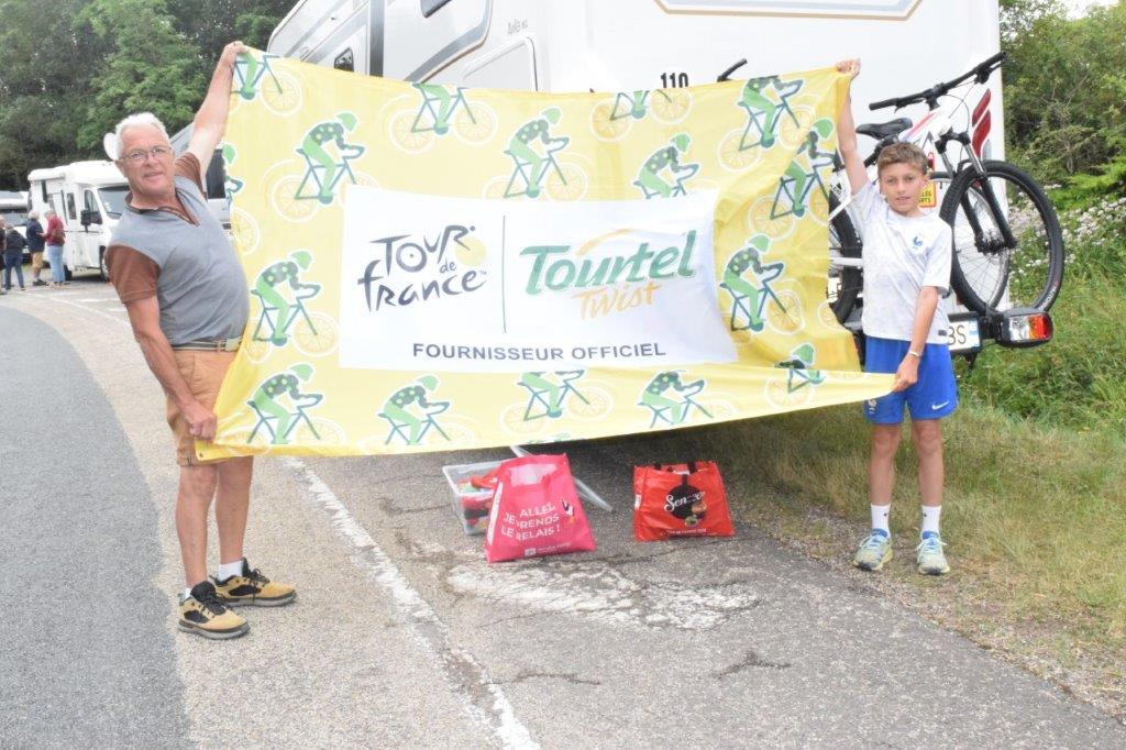 Depuis 2018, Luc et Martine Josse suivent, à quelques exceptions près, toutes les étapes du Tour de France. En compagnie de leur petit-fils Arthur, ils étaient en Italie lors du départ de cette 111ème édition. « Et nous serons présents à Nice lors de l’arrivée » me souffle Luc, tout en me faisant découvrir ses nombreux trophées glanés depuis toutes ces années. Maillots, drapeaux, fanions, casquette, le camping-car ardennais en est rempli. Tout est bien plié, trié et rangé dans des caisses plastiques.