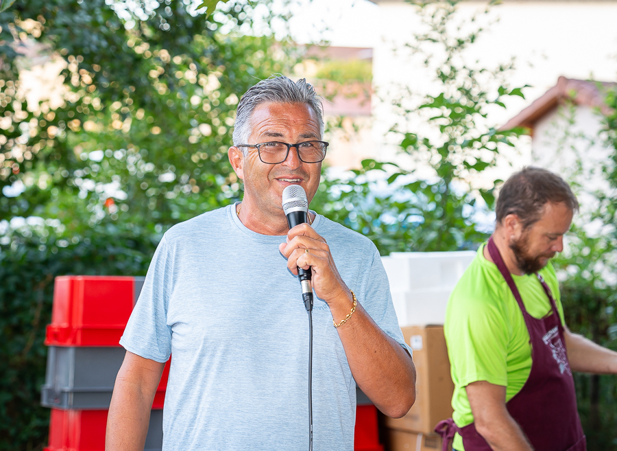 Romain Fortineau, président de Dériv’Chaîne l’association organisatrice de l’évènement, était évidemment satisfait à 8h30 ce matin et nous confiait « une 12ème édition avec plein de nouveautés : cette année nous inaugurons 2 parcours routes en plus des 5 parcours VTT et des 2 parcours Gravel, nous nous diversifions toujours dans le but de faire plaisir aux habitués du Roc d’Azé et également d’accueillir de nouveaux participants pour leur faire découvrir notre terrain de jeu. Cette année, nous souhaitons dépasser à nouveau la barre des 1000 participants et pourquoi pas battre le record de l’an dernier. Nous sommes bien partis puisque nous avions plus de 600 pré-inscrits en ligne avant aujourd’hui. Comme chaque année nous essayons de faire vivre une association, cette année nous soutenons ''Sonia réussira’’, association créée pour aider Sonia Petit, de Romenay, née en mars 1992, atteinte de lésions cérébrales. Donc pour chaque participant, 1 € sera reversé à la famille de Sonia ».