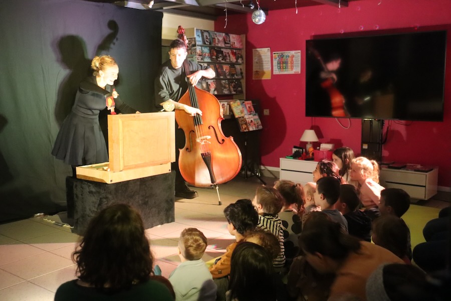 Un spectacle à guichet fermé qui a captivé les enfants, de 6 mois à 6 ans. Ils ont découvert le théâtre d’ombre, la marionnette, la contrebasse et la chanson.