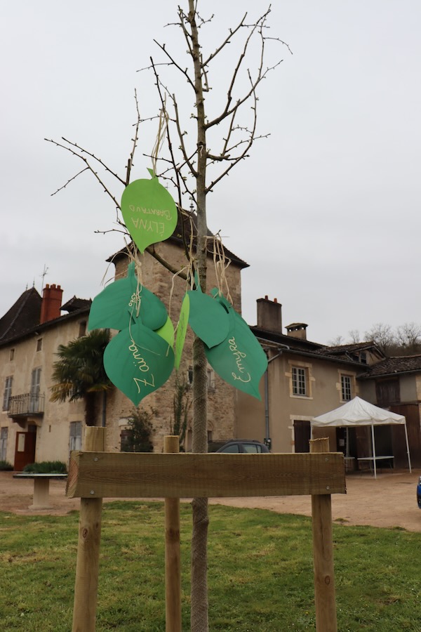 Chacun a pu découvrir le gingko biloba planté devant la façade du château, qui deviendra, au fil de sa croissance, un arbre majestueux, aux belles feuilles jaunes. Célèbre pour avoir survécu à l'explosion d'Hiroshima, le ginkgo est devenu un symbole mondial de résilience et de renouveau. En Asie, c’est un arbre sacré qui représente la longévité et la résistance. Toute l’équipe municipale a ainsi présenté ses vœux de belle et longue vie aux enfants et à leurs familles.