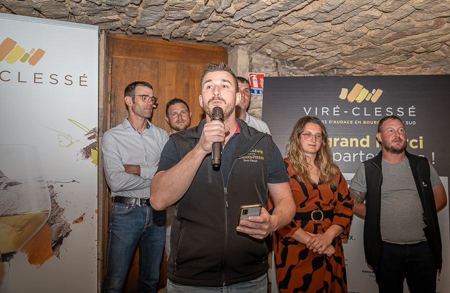 Devant vignerons, élus et partenaires, Franz-Ludwig Gondard, responsable de l’organisation de l’évènement a commencé par « remercier tous les invités qui ont répondu présents ce soir, ainsi que les élus, le député Benjamin Dirx, Patrick Desroches, conseiller départemental et maire de Viré, Denis Kissel, fraichement élu maire de Clessé, Philippe Demousseau, maire de Laizé, messieurs Bruno Galli et Thierry Garnier adjoints au maire de Montbellet. Ce soir toutes les communes, où il y a l’appellation Viré-Clessé, sont présentes, cela fait énormément plaisir ! Monsieur Da Costa de la DRI qui nous accompagne et nous donne des conseils avisés pour toute l’organisation. Je tiens évidemment à remercier tous les membres de la commission du comité d’organisation, tous les bénévoles, Fanny Perrier pour son travail dans l’ombre, Monsieur François Lafay (dit clochette), agent communal de Clessé, les employés communaux de la mairie de Viré et bien sûr vous tous nos partenaires ! »