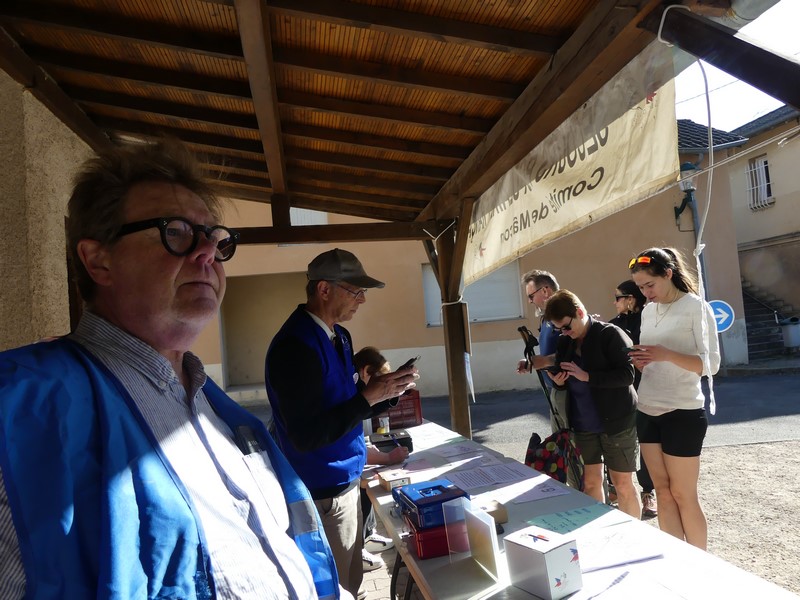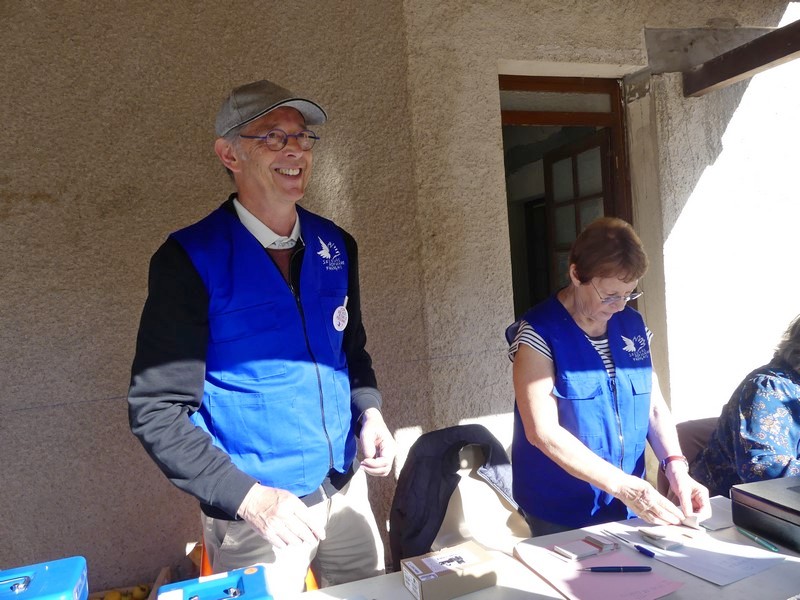 Depuis tôt ce matin, la vingtaine de bénévoles du Secours Populaire est mobilisée devant la salle des fêtes de la Roche-Vineuse et sur les parcours pour l'accueil et le ravitaillement.