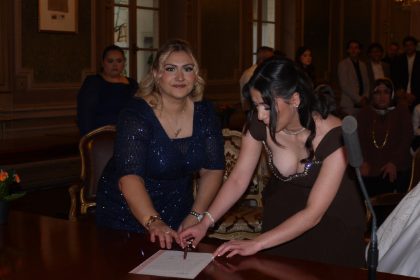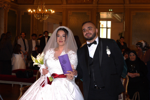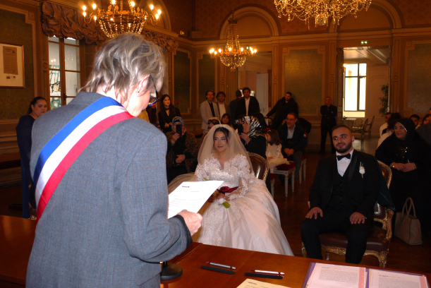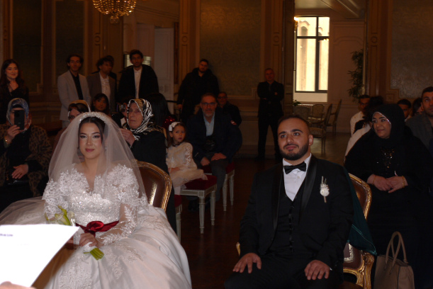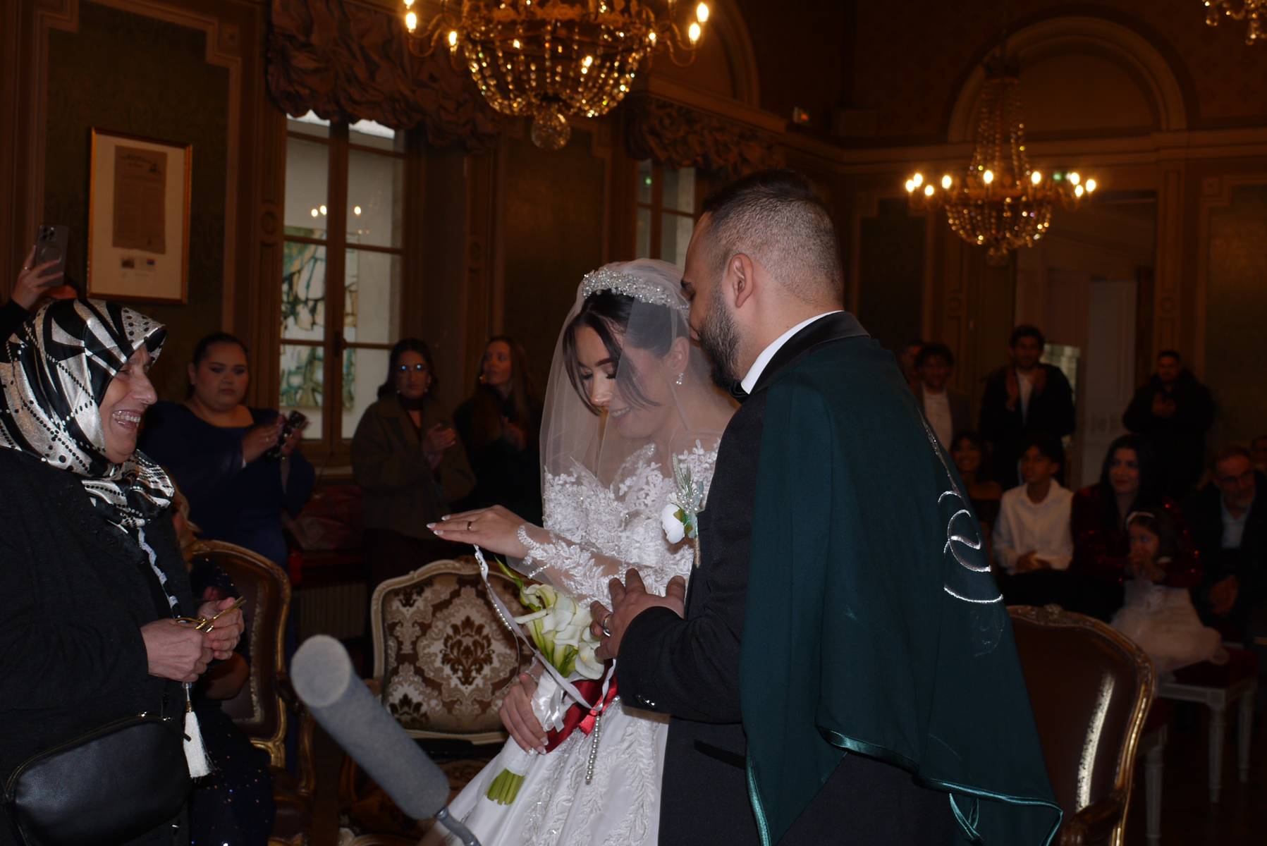 Umit, technicien chauffagiste né le 23 mai 1997 à La Tronche en Isère, et Fatma, gestionnaire comptable née le 7 octobre 1995 à Mâcon, ont pu s'unir après que l'adjointe au maire a prononcé les modalités du mariage. 4 témoins accompagnaient leur cérémonie, Beyza Köse, Saliha Kara, Tugba Karaoglan et Saad Amar Menzer. C'est dans la tradition turque, où les alliances sont reliées par un ruban, coupé par la grand-mère de Fatma, que les deux jeunes mariés ont prononcé leur engagement. Le ruban, agrémenté de perles, ajoutait à la douceur de ce moment, retranscrit également dans les embrassades de félicitations qui ont suivi la cérémonie.