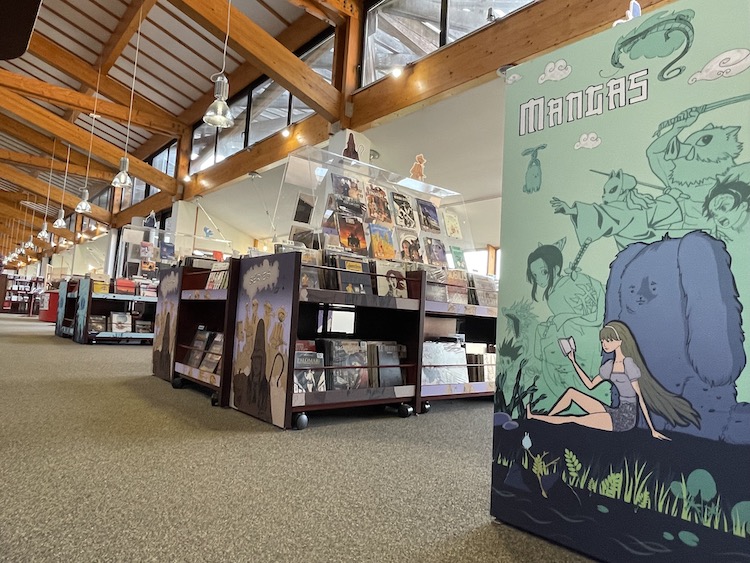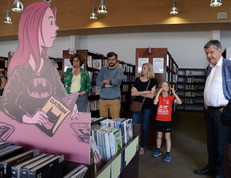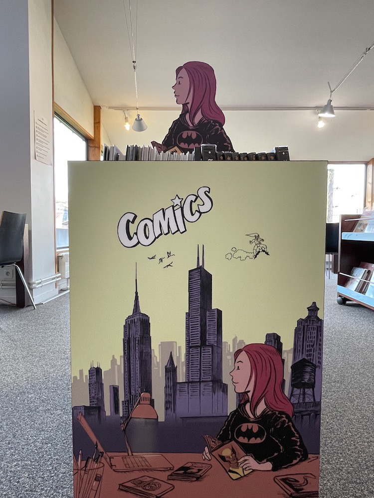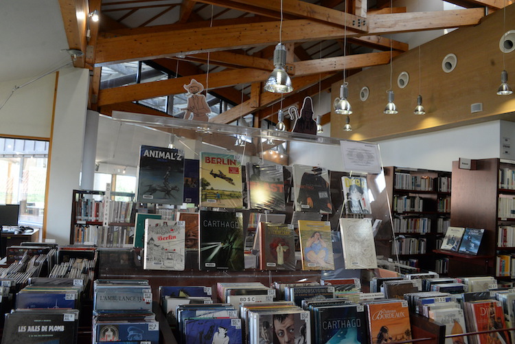 L’idée est donc née il y a trois ans (déjà !) de mettre en valeur ce fonds et l’espace qui lui est consacré au deuxième étage de la médiathèque en créant une signalétique particulière, bien inspirée de l’univers de la BD, des comics et des mangas.