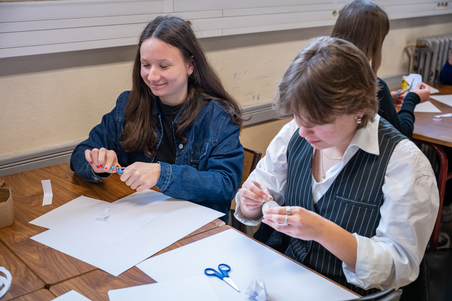 « En ces temps compliqués, les transports et les déplacements sont difficiles à mettre en place donc il s’agit d’un bon compromis avec le musée qui vient aux élèves à l’aide de l’outil numérique » ajoute Dominique Devos-Laurent, professeure d’histoire-géographie au lycée. En parallèle, Lauriane Belle, également médiatrice culturelle pour l’association, a donné la possibilité aux élèves de laisser parler leur créativité autour d’un atelier pratique sur la création de coiffes en papier.