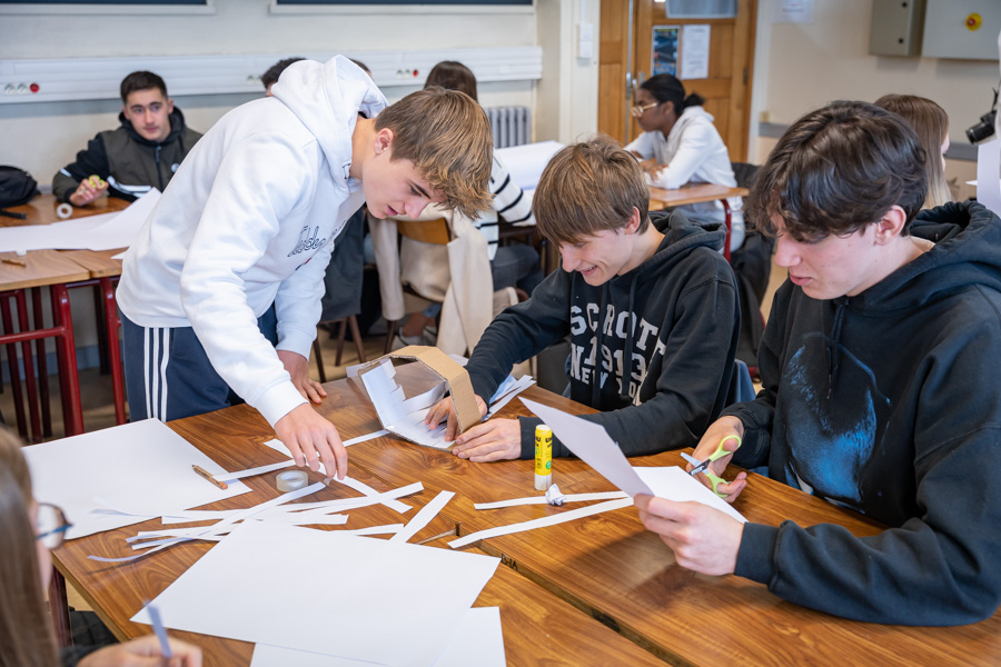 Depuis 10h ce matin, plusieurs ateliers sur Versailles ont été dispensés par l’association Cculte. Les médiatrices culturelles de l’association, basée près de Beaune en Côte d’Or, sont intervenues auprès de 3 classes de 2nde et ont animé une conférence sur Versailles et des ateliers différents selon les séances (création de coiffes en papier en rapport avec les perruques et la mode de Versailles, atelier de photographie autour des bosquets de Versailles, atelier portrait et attributs).