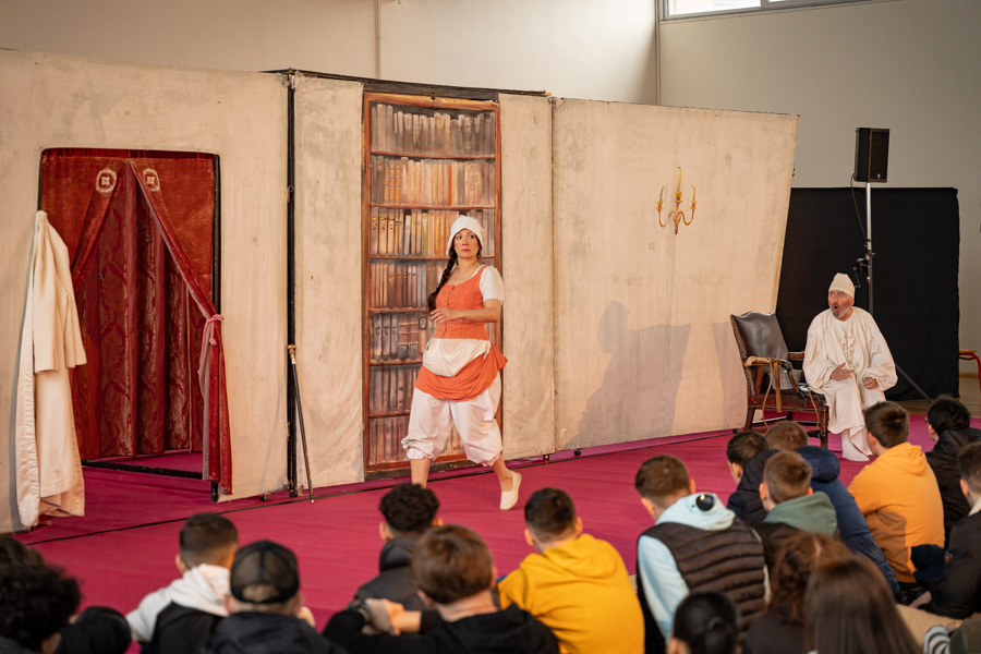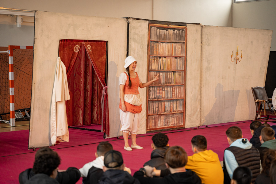 Isabelle Bergot-Roy, proviseure-adjointe et en charge du bon déroulement de cette semaine culturelle intense et riche en évènements nous indique « la semaine culturelle démarre avec une représentation de la pièce de théâtre de Molière "Le malade imaginaire" interprétée par la Compagnie du Héron. Aujourd'hui, nous avons deux représentations de 95 minutes à 10h et à 14h pour environ 250 élèves (de 2nde et 1ère) à chacune d’elles. Cette année, même s’il n’y a pas de thème spécifique, les principaux sujets abordés lors des ateliers portent sur les inégalités hommes-femmes et le sexisme. »