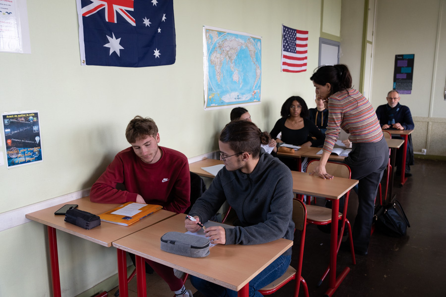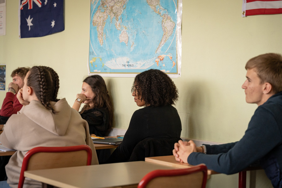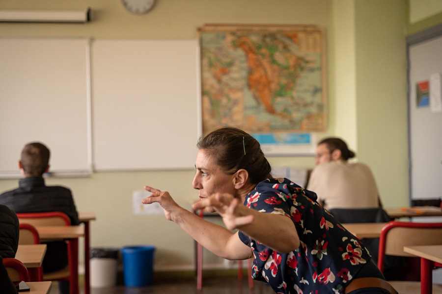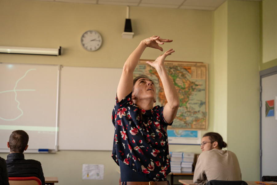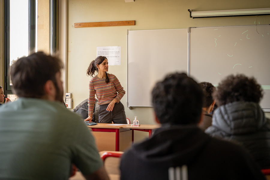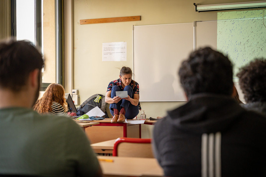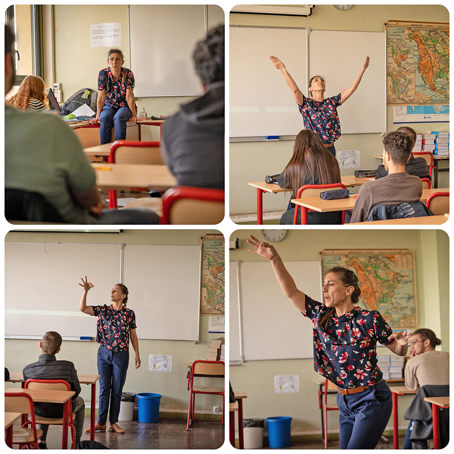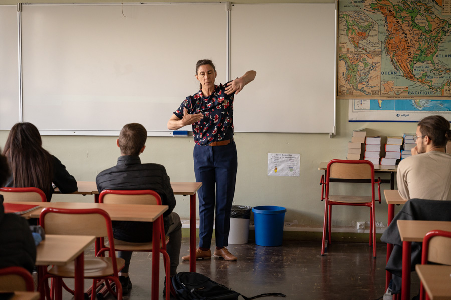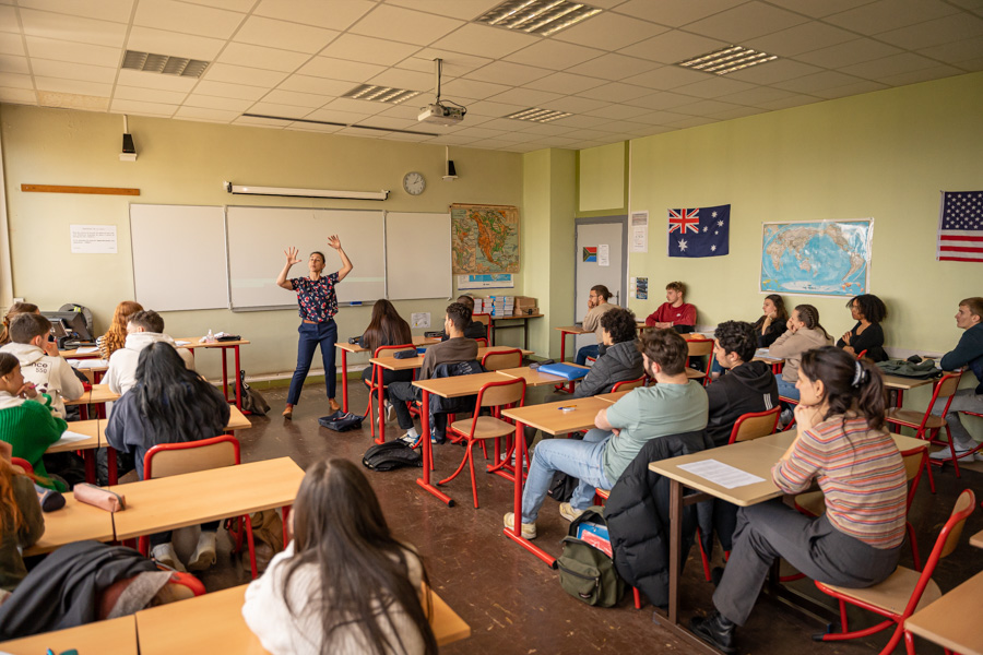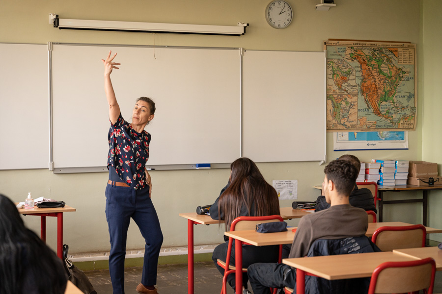 La proviseure-adjointe du lycée, Isabelle Bergot-Roy et son équipe, se sont démenées pour préparer au mieux cette semaine et apporter de l’originalité aux élèves avec un effet de surprise. En effet, il est 14h dans le bâtiment des langues (bat’ 0 pour les connaisseurs) du lycée et une classe de 2nde s’apprête à commencer son cours d’espagnol quand soudain, l’enseignante se retire discrètement au fond de la salle et une personne inconnue entre en classe et commence à danser... Cette intervention surprise est l’œuvre d’Émilie Buestel, danseuse et chorégraphe de la Compagnie "Sauf le dimanche" qui a donc présenté le solo de danse "Ma prof ?" qu’elle a entièrement créé. La chorégraphie, au milieu des élèves, sac à dos, chaises et sous le regard attentif du proviseur Bernard Poirié, a duré 25 minutes avant un échange avec les élèves bluffés et surpris. Trois classes de 2nde ont eu la chance d’assister à cette représentation à 11h, 14h et 16h aujourd’hui.