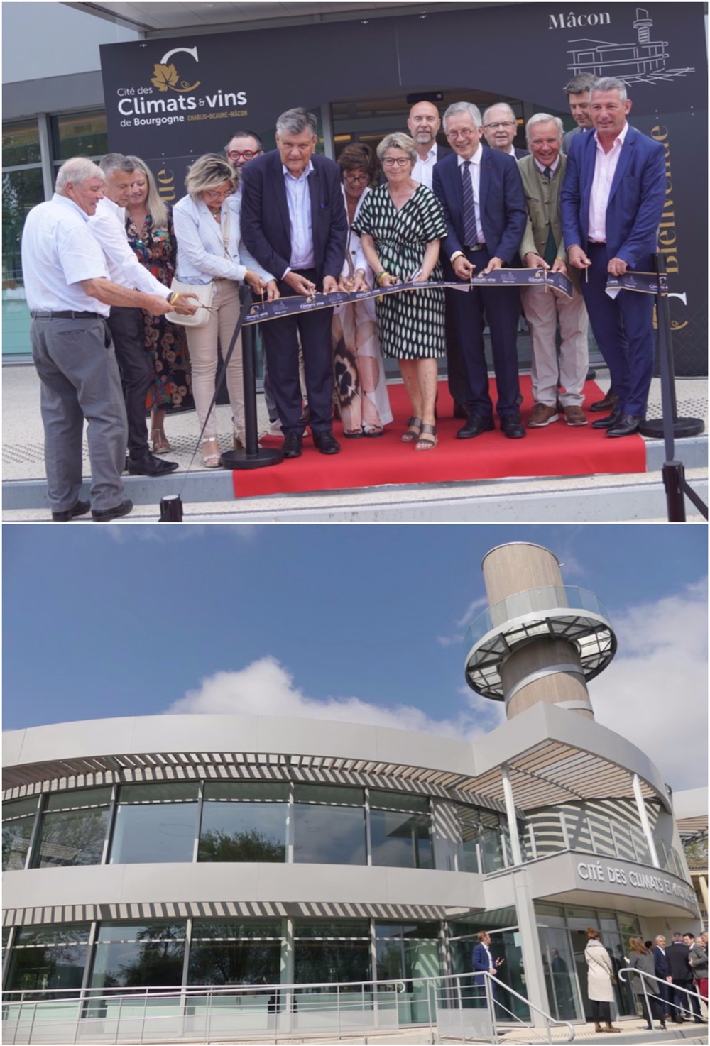 Le président de « la Cité des Climats et Vins de Bourgogne » Benoît de Charette et le directeur de la Cité de Mâcon Olivier Leroy ont accueilli une centaine d'invité.e.s ce vendredi après-midi, pour l'inauguration du site de Mâcon après celui de Chablis hier et Beaune le matin même.