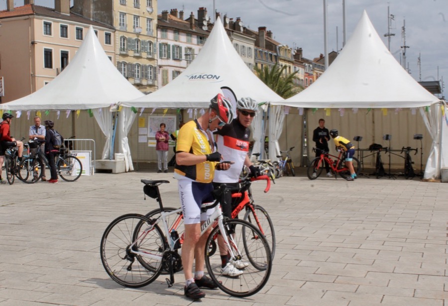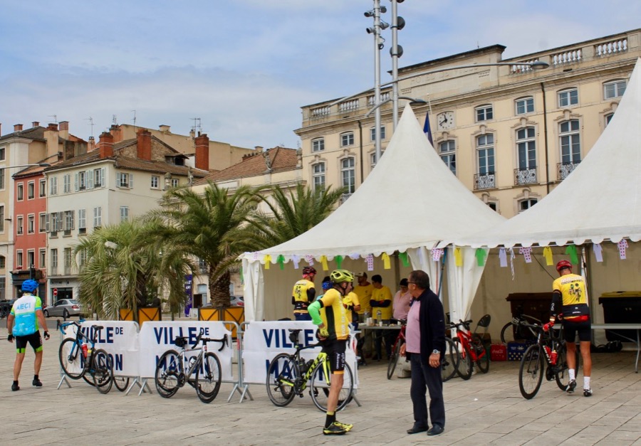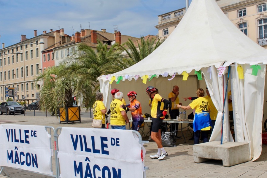Ce matin, sur l’Esplanade Lamartine, la Fête du Tour a vu le départ des quatre parcours de randonnée cyclotouristes proposés par « l’Étoile Cycliste Flacéenne » (40 km, 60 km, 90 km et 120 km) ; chacun passe sur une partie du parcours de la 6ème étape du Tour.