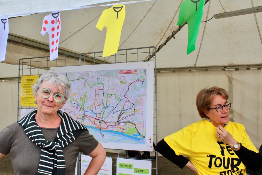 Les bénévoles de l’association Vélo en Ville, qui promeut l’usage du vélo urbain, ont présenté des vélos cargos (tri et biporteur) ainsi que des vélos rallongés.