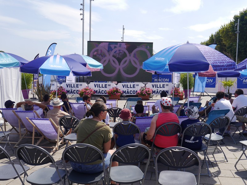 Au lendemain de son inauguration, le Club 2024 de Mâcon trouve tranquillement son rythme de croisière. Malgré la chaleur, de nombreux Mâconnais étaient sur l’Esplanade pour assister à la victoire du 7 d’Antoine Dupont en demi-finale et aux exploits des sportifs français.