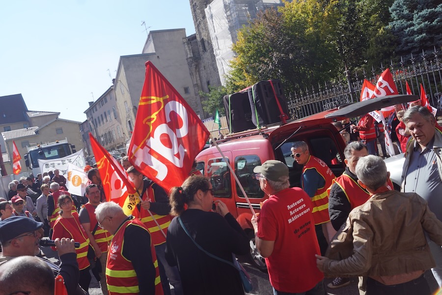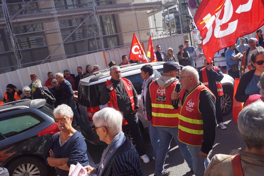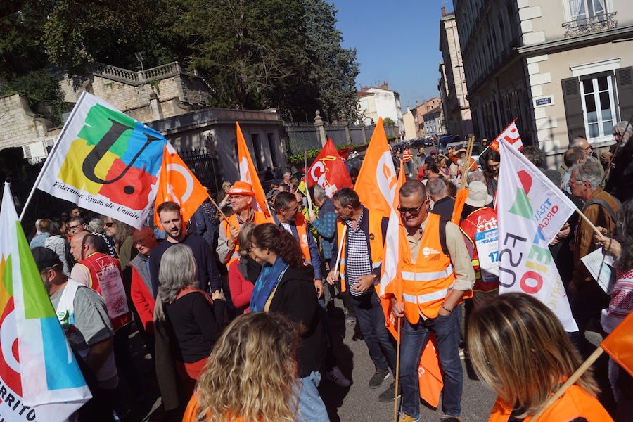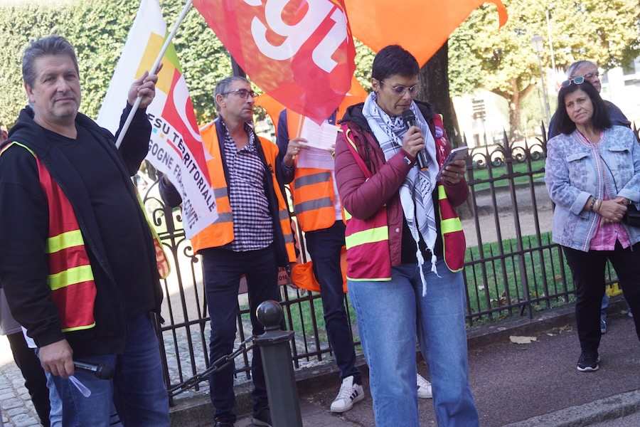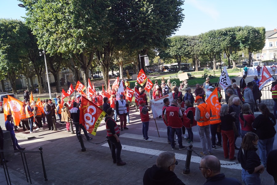 Nouvel appel à la grève ce 2 octobre par les différents syndicats qui ont à nouveau fait une déclaration commune. Les représentants de la CFDT, de la CGT, de FO et de FSU ont prononcé quelques mots devant le square de la Paix vers 14h45 cet après-midi, après être partis de la préfecture, point de rassemblement.