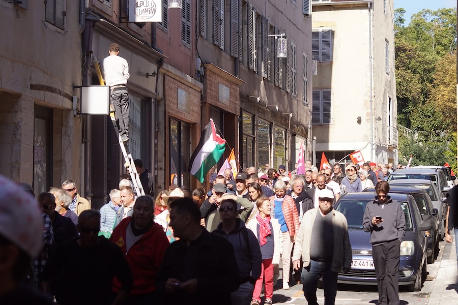 Des mots ont été prononcés par Emilie Quandalle, secrétaire de l'UL CGT Mâcon, en solidarité à un camarade CGTiste, Cédric, participant à la flottille de la paix à Gaza récemment interceptée et détenu par l'armée israélienne.