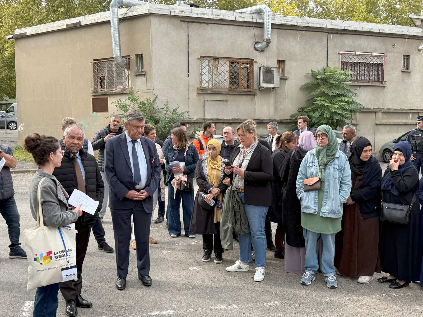 Jean-Patrick Courtois, président de Mâconnais Beaujolais Agglomération, et Dominique Dufour, préfet de Saône-et-Loire, la Secrétaire générale de la préfecture de Saône-et-Loire, Agnès Chavanon, ainsi que la Sous-Préfète, Directrice de Cabinet, SalwaPhilibert,  sont allés à la rencontre des habitants du quartier afin d'observer et d’aborder avec eux différentes thématiques, telles que l’espace et les équipements publics, la sécurité, les déplacements ou encore la gestion des déchets.