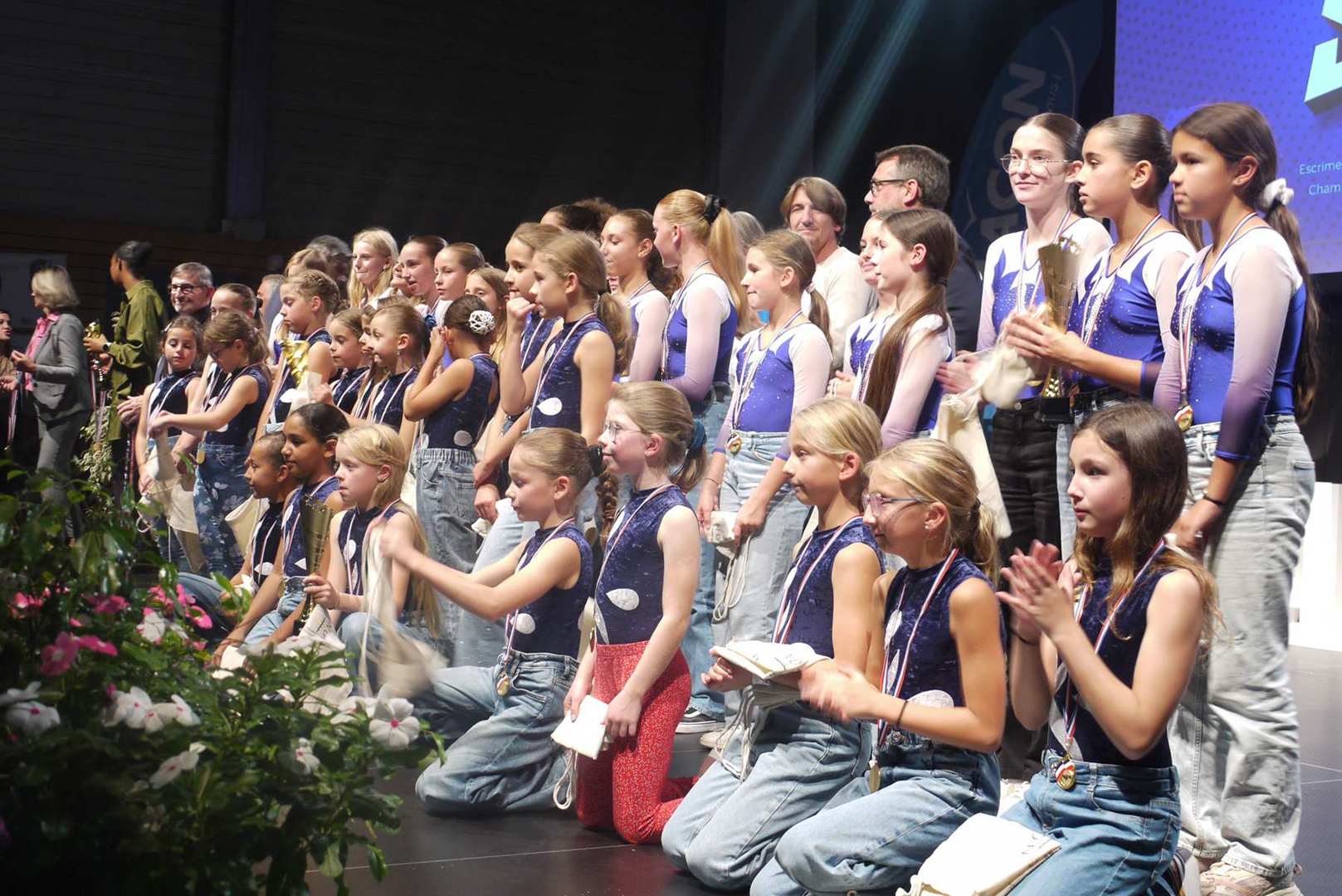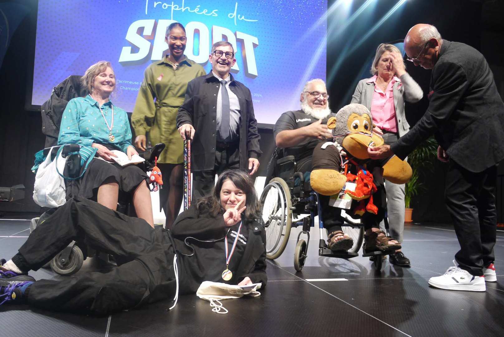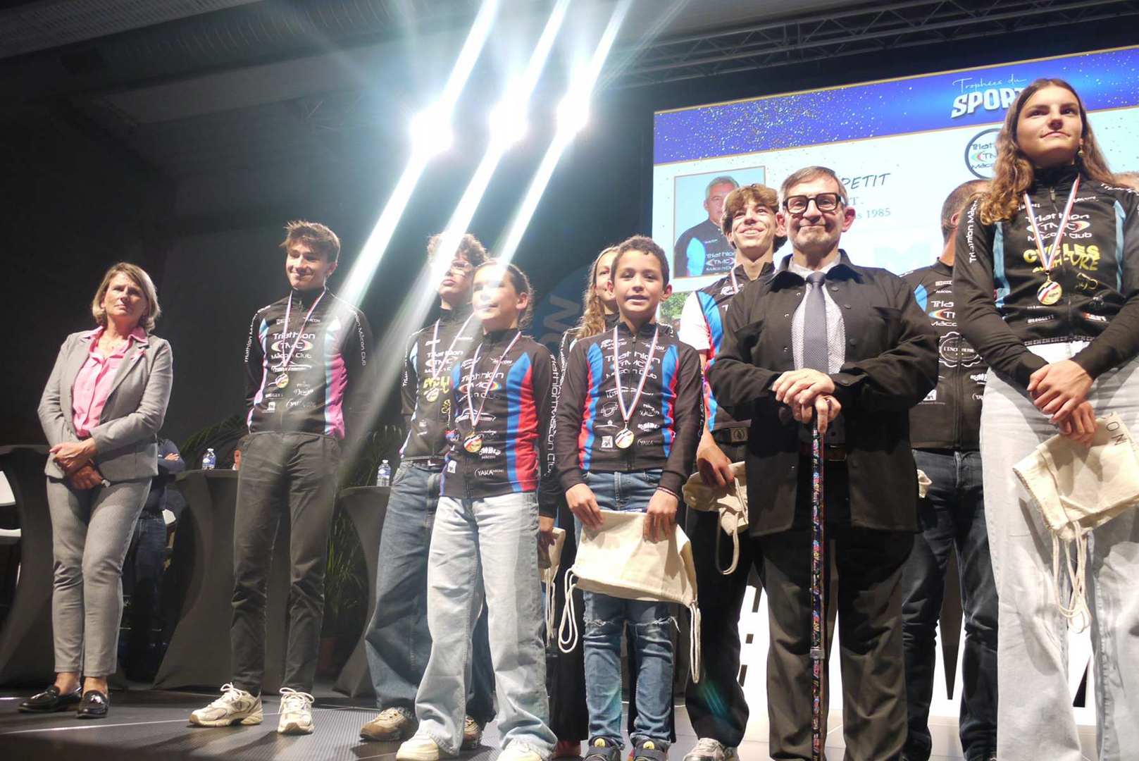 Avant d’entamer la remise des prix, une médaille de la ville est remise à Coraline, après un retour sur ses exploits, marquant ainsi l’honneur de l’avoir invitée pour la cérémonie. Les 22 clubs ou associations sportives ont pu ensuite se succéder sur scène ou leur a été remis médailles et trophées pour récompenser leurs réussites. Sourires et geste de reconnaissances s’enchaînent sur une scène souvent bien remplie par les nombreux sportifs triomphants. Des show de jonglage avec jeux de lumière venaient ponctuer la cérémonie pour le plus grand plaisir du public.