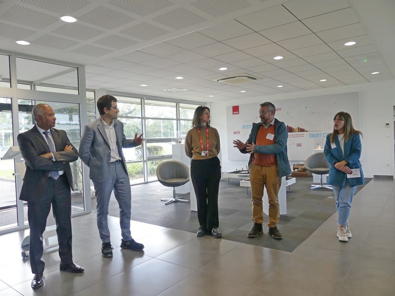 Le directeur du site de Mâcon de ITRON FRANCE Jean-Philippe Fieldes, sa Directrice des Ressources Mileva Berger et Stéphanie Long responsable RH, ont accueilli très chaleureusement ce matin, le Préfet, Daniel Boussit directeur de la DDETS et Molly Pomares consultante RH en Saône-et-Loire pour SIRAC et Baptiste Dumas, référent pour SIRAC.