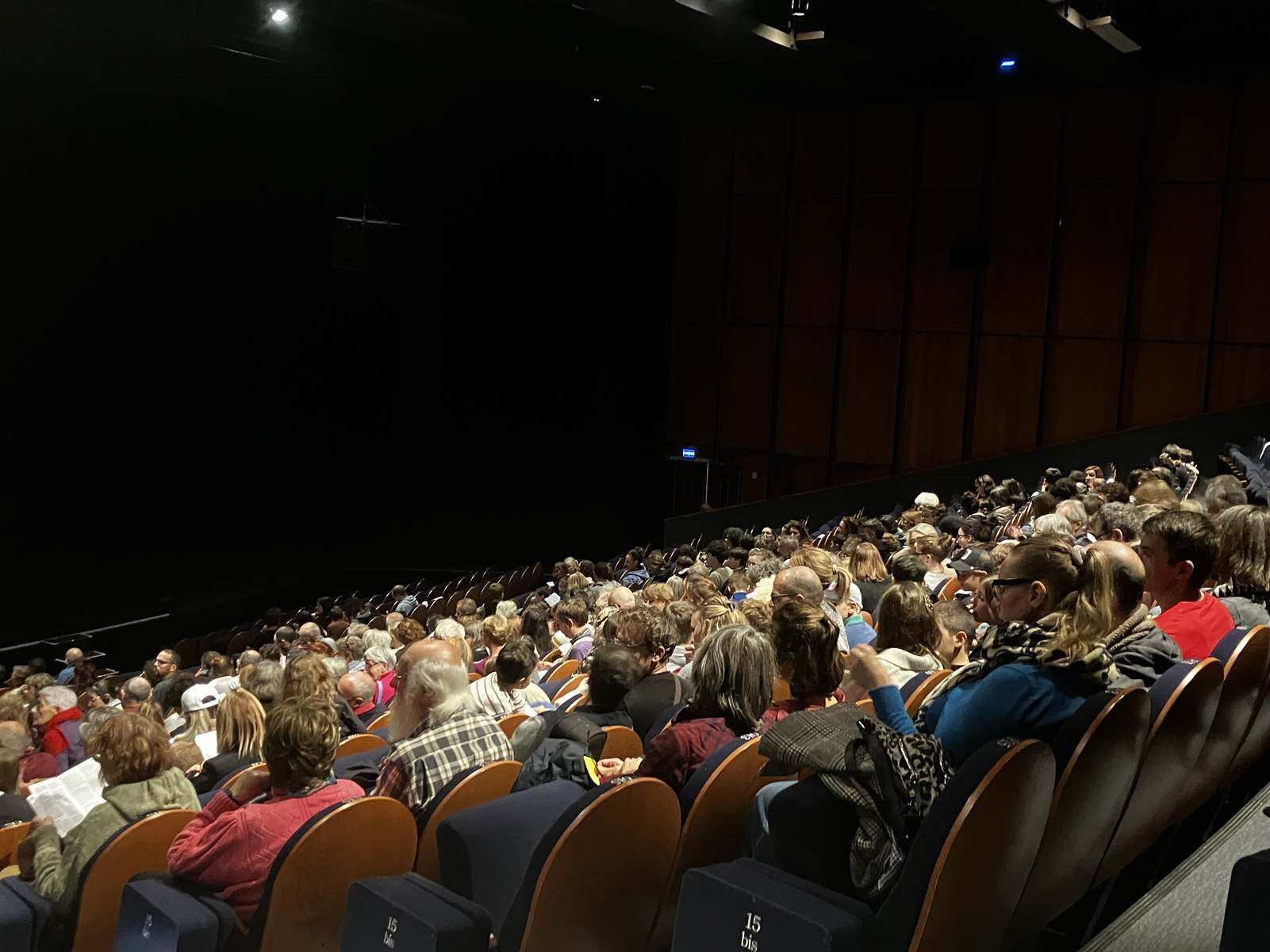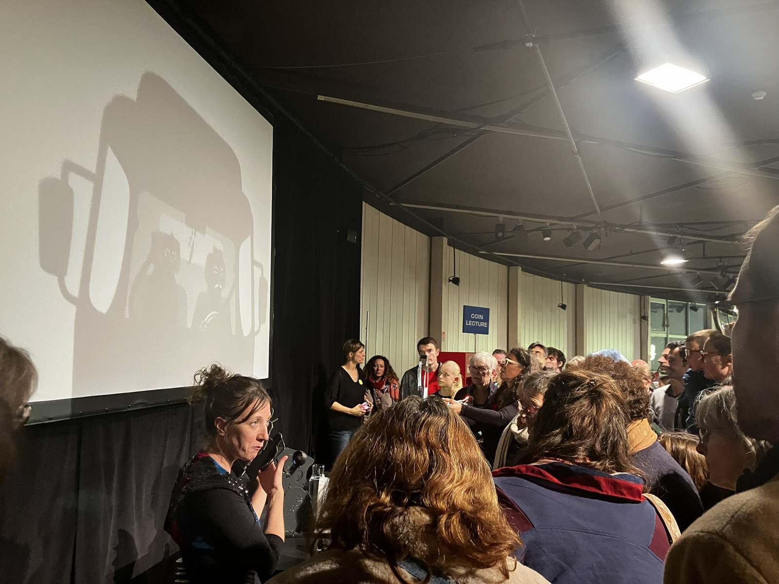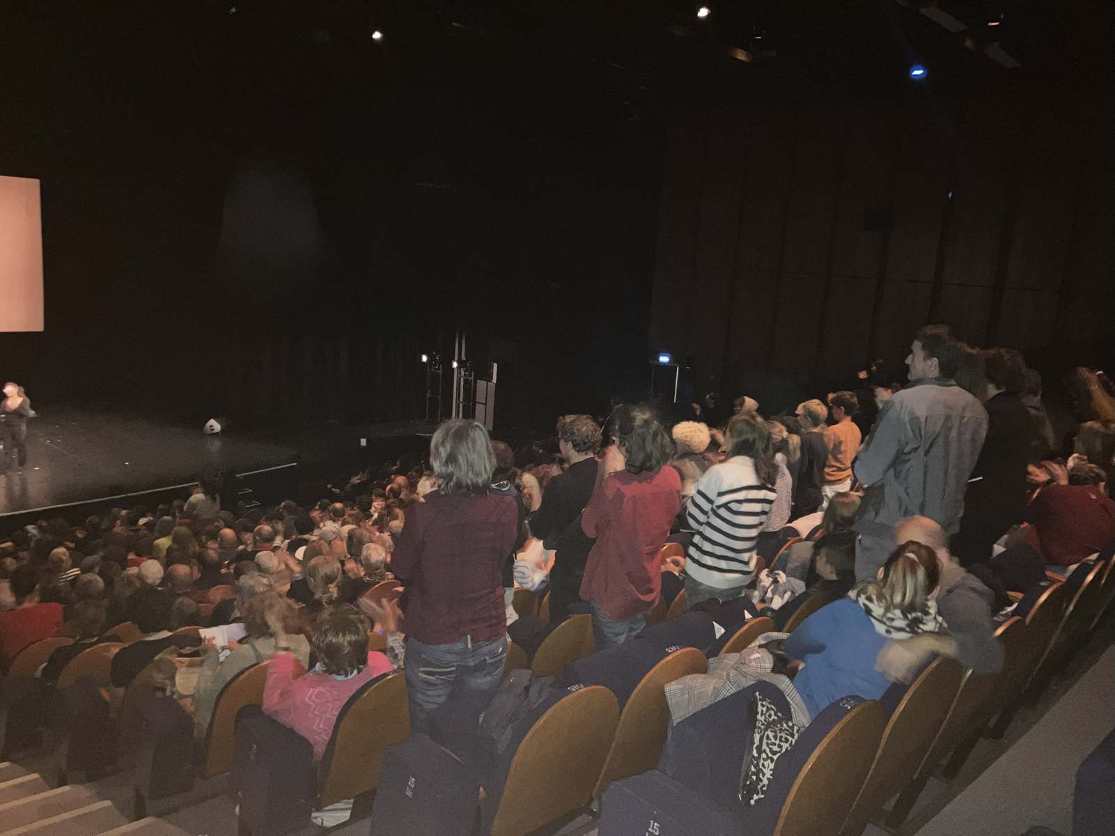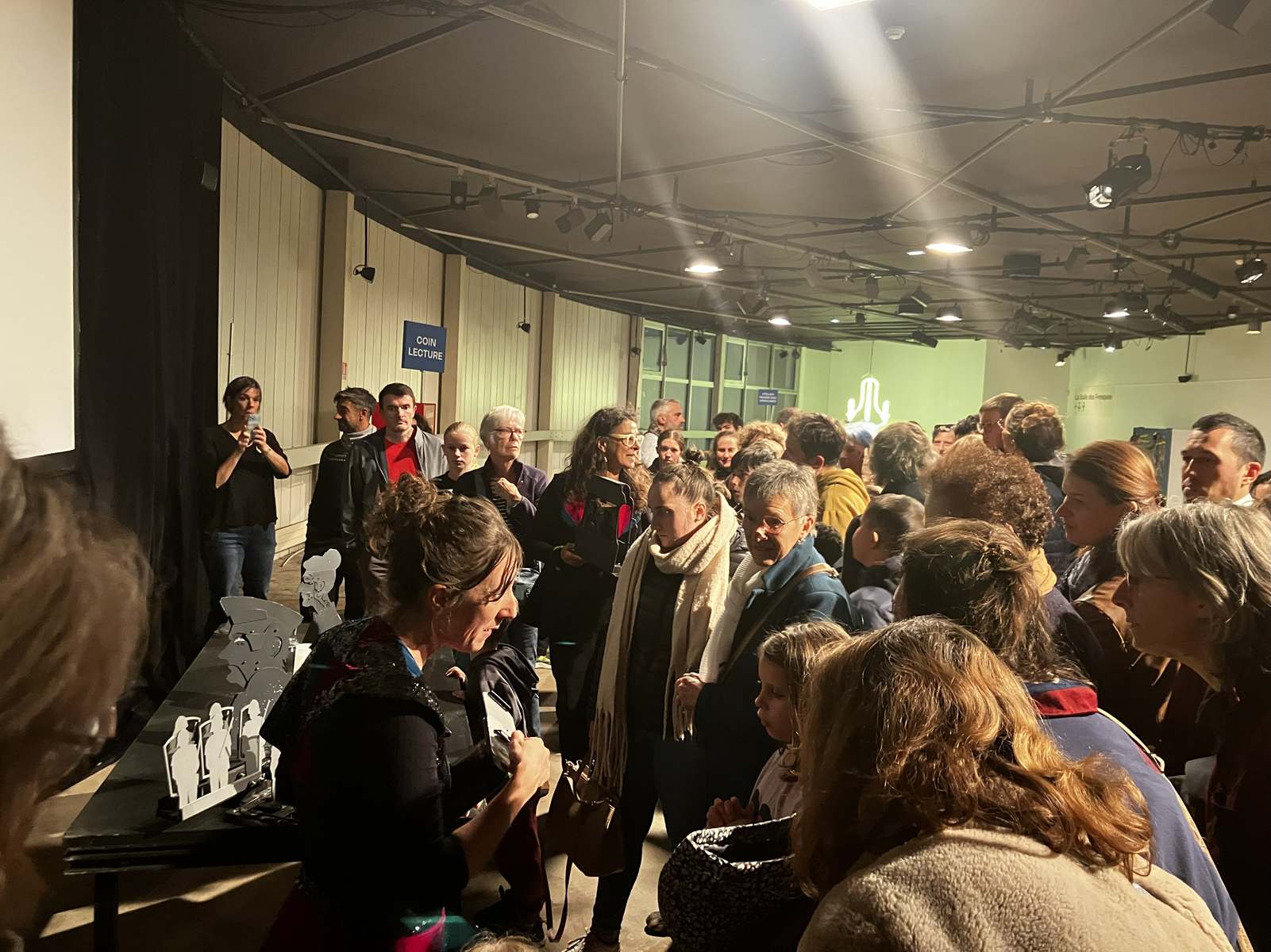 Le spectacle a eu un franc succès, la salle était pleine, et le public s’est levé lors des applaudissements finaux, saluant le travail multiple de la compagnie. S’inscrivant au cœur des enjeux du week-end, la soirée se conclue à l’extérieur de la salle, où les musiciens jouent au plus près du public, tandis qu’une des artistes présente l’un des décors miniatures avec une démonstration de projection.