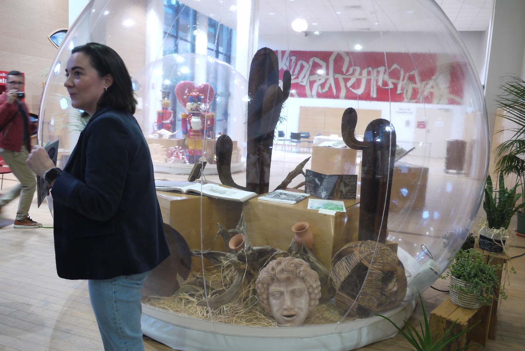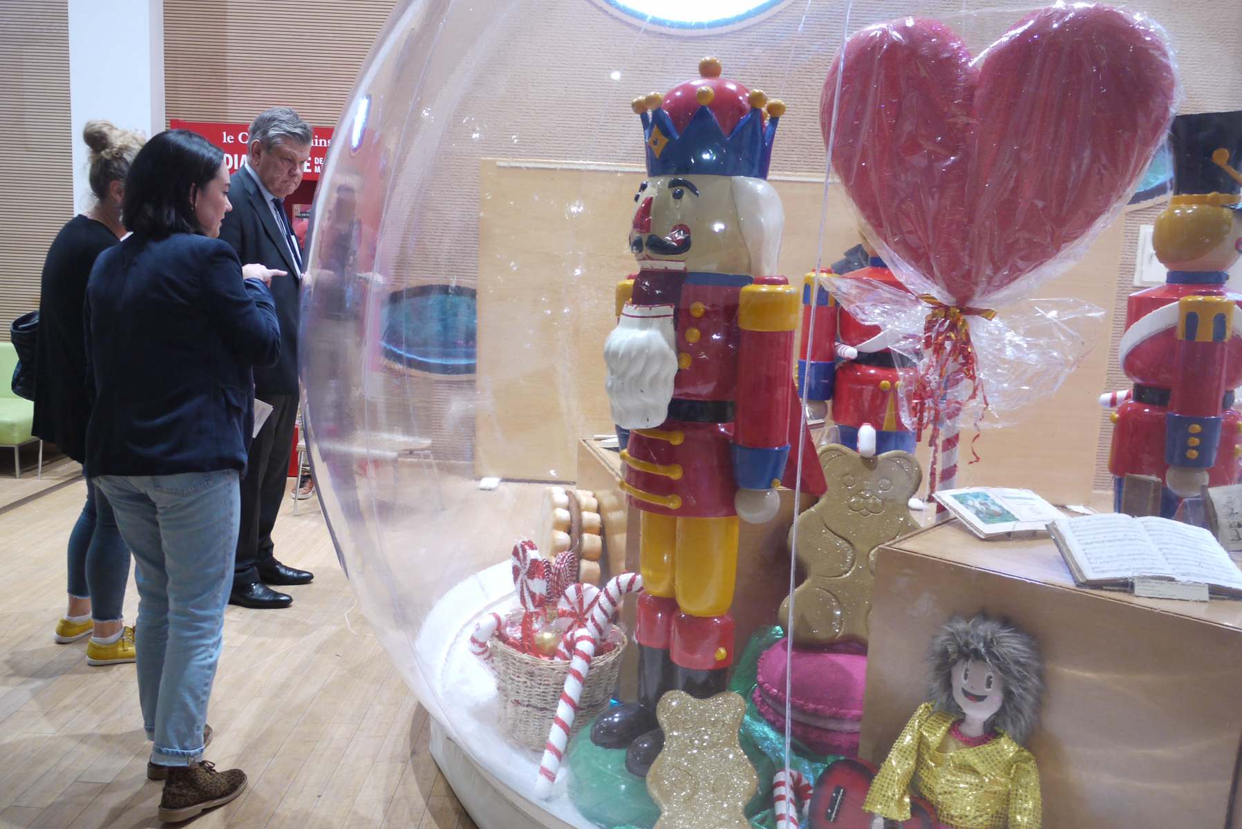 L’exposition est visible dès le hall de la médiathèque, mais est également dispersée dans les étages, dans un parcours traversant les différentes pièces. Dans le hall, deux émotions sont représentées sous des sphères, la tristesse, et l’esprit festif. Pour cette dernière, Amandine souligne que des archives de Lamartine ont été utilisées, ce qui est plutôt surprenant. À l’étage, sous forme de pièces ou box, trois autres émotions sont exposées : la peur, la colère et la surprise. On peut notamment citer dans la représentation de la peur une archive des écorchés, première représentation de l’anatomie humaine. Pour la dernière émotion, celle de la surprise, sont présentés des archives exclusives, très peu connues.