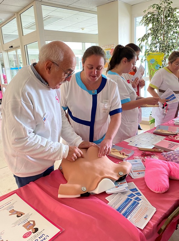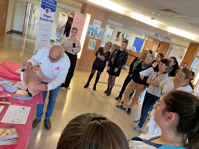 Le Dr Sauzedde a proposé à la pause méridienne une intervention sur l’auto-palpation au personnel de la Polyclinique.