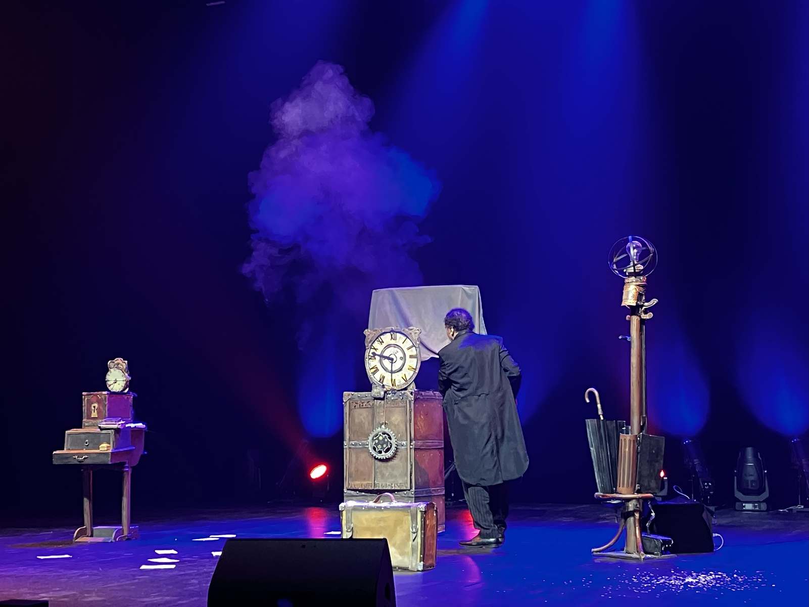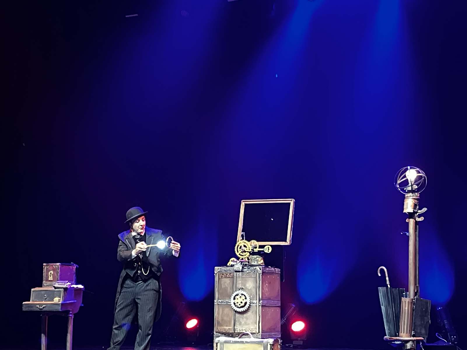 Le premier spectacle prend forme dans un décor d’époque mettant en scène Charly, le maître du temps. Autodidacte, ce dernier a remporté le titre de champion de France de magie en 2016. Sous les yeux ébahis du public, les objets, tantôt une horloge, une clé ou un sablier, prennent vie, se transforment ou s’envolent dans un jeu de paillettes, de fumée, d’étincelles ou de pages volantes.