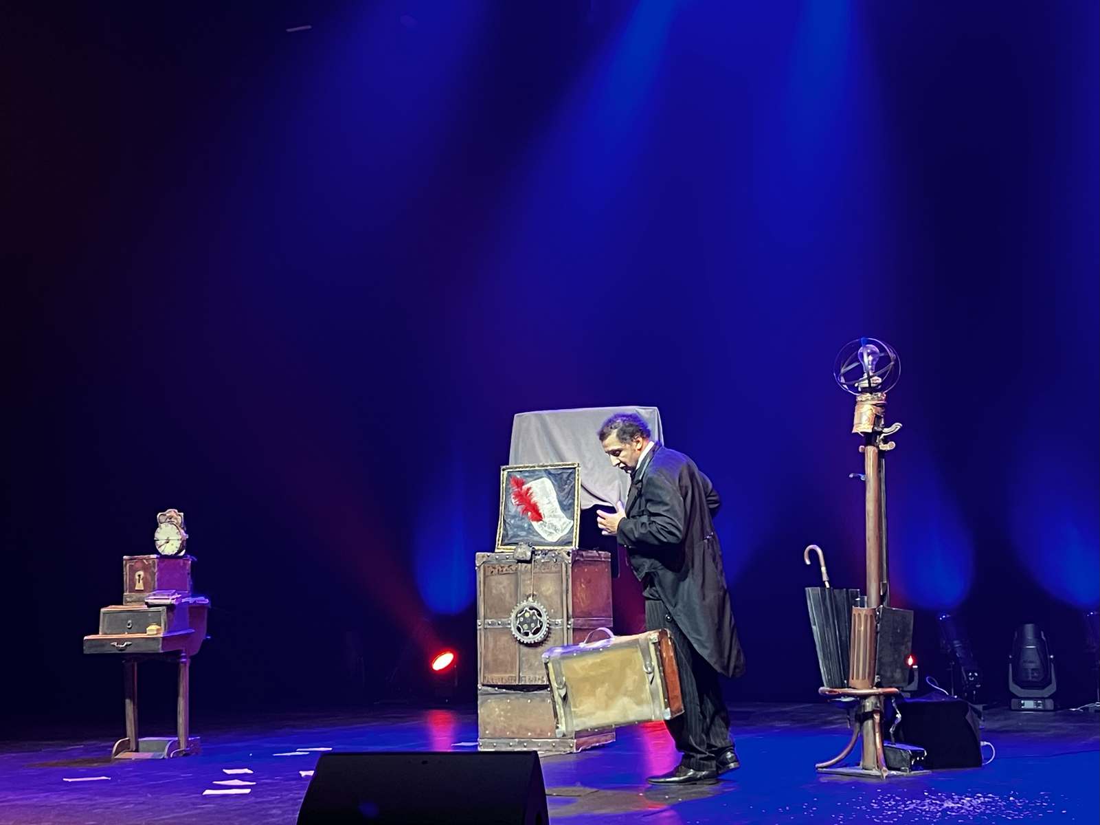 L’introduction se fait bien sûr en humour avec Philippe. Les motifs étoilés de son costume, la spontanéité du public ou l’incompréhension de celui sélectionné à participer sont autant de sujets amenant l’illusionniste à provoquer le rire. Dans un court instant sérieux, il incite cependant à voir des spectacles vivants, précisant que cela « rend meilleur ». Pour cette préface, il fait tirer au sort à deux personnes sur scène des pancartes ayant des directives pour déclencher les réactions des spectateurs. Une belle entrée en matière pour mettre l’ambiance.