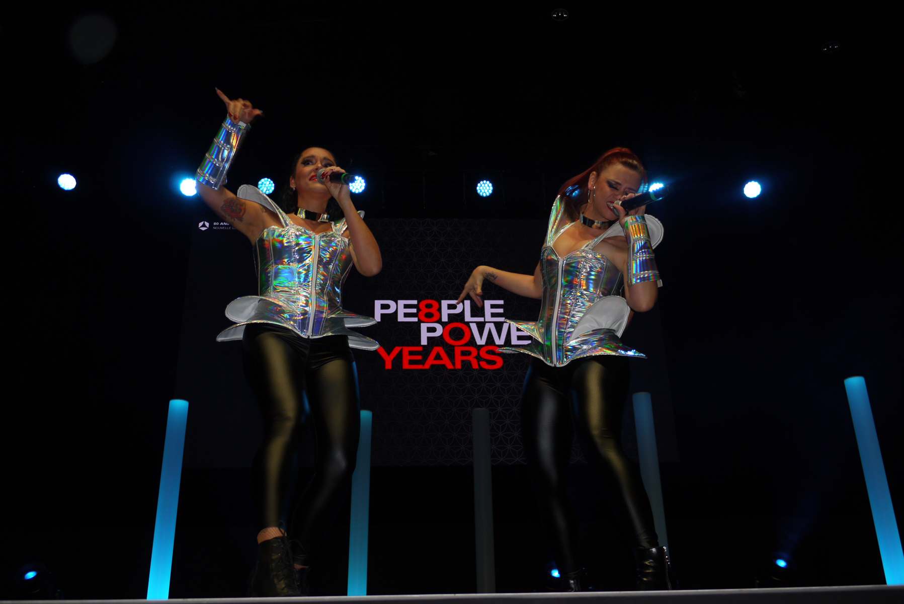 La cérémonie débute après ces discours et remerciements d'introduction. Au total ce sont plus de 80 collaborateurs qui sont récompensés avec 3 distinctions selon le temps de service : la médaille argent pour 20 années, vermeille pour 30 années , or pour 35 années et enfin grand or pour 40 années. La remise des médailles est entrecoupée avec 7 danseurs et 2 chanteuses qui ont vraiment ravis les invités. Des grands classiques anglais et francais et les chansons du moment se succèdent dans des chorégraphies tout en couleur et paillettes. Les artistes interprète avec brillo les différents chanteurs, très cohérent dans leur costumes ou leurs attitudes. La cérémonie reprend avec humour quand au fait de rivaliser sur la danse ou les costumes. L'un des médaillés grand or est ému aux larmes et lors de la dernière vidéo de présentation, les invités frappent avec entrain dans leur mains au rythme de la musique.