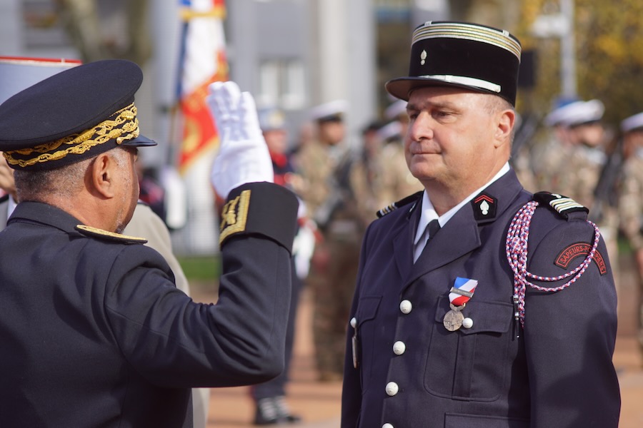 La cérémonie a débuté par le passage en revue des troupes par le lieutenant-colonel Ronan Cottin, délégué départemental militaire, et le colonel Tomica Lukic, commandant du groupement de gendarmerie de Saône-et-Loire. Vinrent ensuite les remises de décorations à quatre militaires : la médaille d’argent des réservistes volontaires de défense et de sécurité intérieure avec agrafe garde nationale au capitaine Pascal Treuillet et au Major Jean Piebourg, réservistes auprès de la délégation militaire départementale ; la médaille de la sécurité intérieure échelon bronze au lieutenant-colonel Eric Balzano, du SDIS 71 et au Major Frédéric Cachenau, commandant le service des affaires immobilières du groupement de gendarmerie de Mâcon.