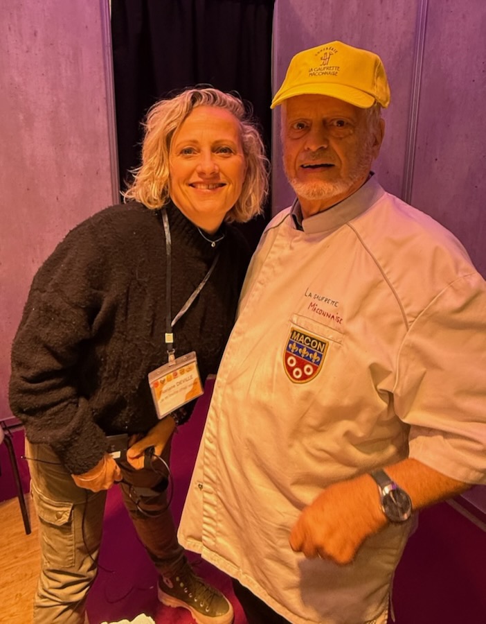 Dans les dernières minutes du concours, Jean-Patrick Courtois, le maire de Mâcon, et Hervé Reynaud, son adjoint à la culture, observent attentivement les candidat.es, témoignant de l’importance patrimoniale de cette spécialité mâconnaise.