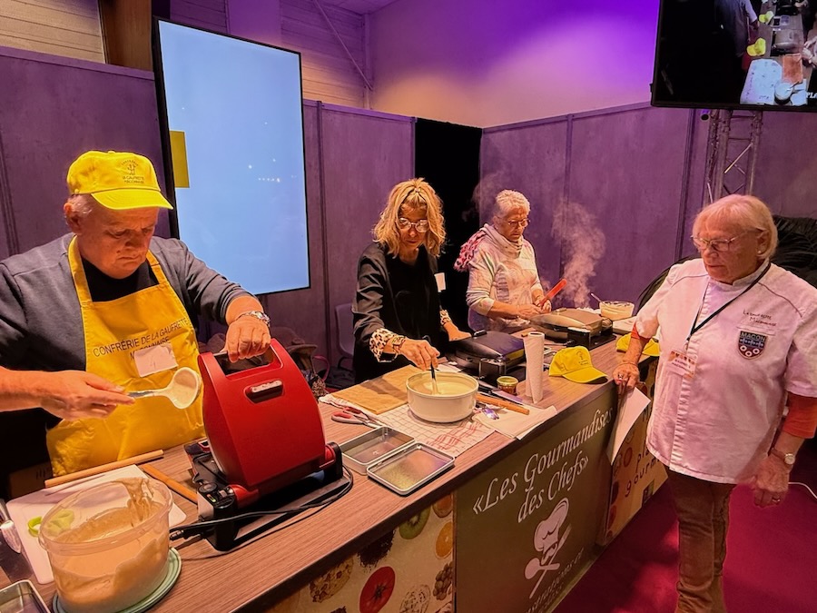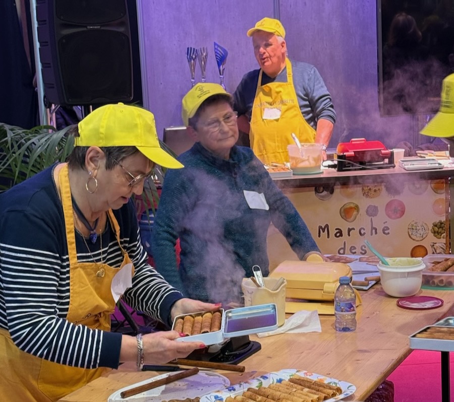 Près de 150 personnes sont rassemblées devant les postes de cuisson et les gaufriers fumants, dégageant l’odeur d’enfance sublime de ces gâteaux…