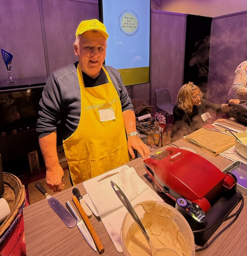 Casquette vissée sur la tête et micro collé au visage, le Grand Maître mène l’événement avec le même enthousiasme communicatif que les années précédentes. Il rappelle notamment que, comme le veut la tradition, les vainqueur.es des éditions antérieures intégré.es à la Confrérie ne peuvent plus concourir, préservant ainsi un concours 100 % amateur et toujours renouvelé. Il redonne la très courte liste des ingrédients basiques : « Farine-Crème-Sucre ».