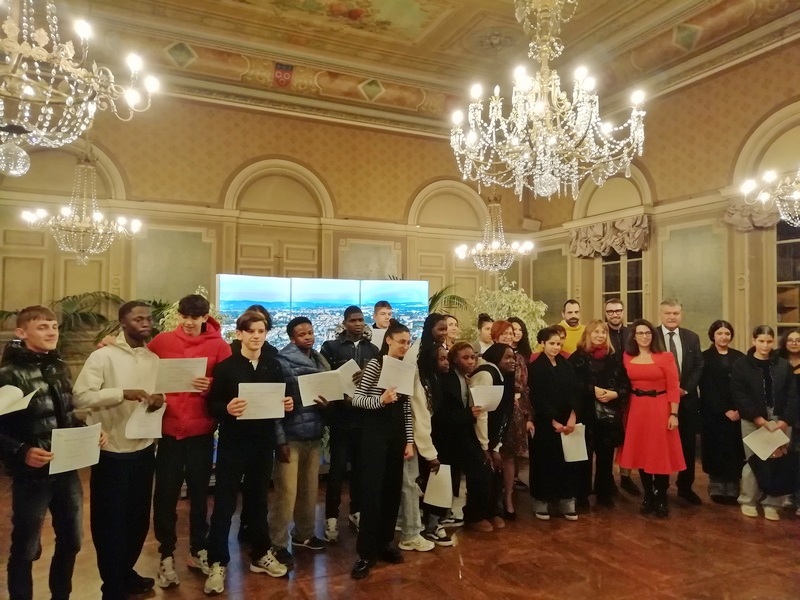 Le grand salon de la mairie de Mâcon recevait des hôtes particuliers en ce mardi 18 novembre. Des jeunes collégiens du collège Pasteur étaient reçus par Mr Courtois, Maire de Mâcon, au cours d'une cérémonie de remise du Diplôme en Langue Française (DELF). Ce diplôme délivré par le ministère de l'Education Nationale certifie des compètences en français pour des personnes dont le français n'est pas la langue maternelle.