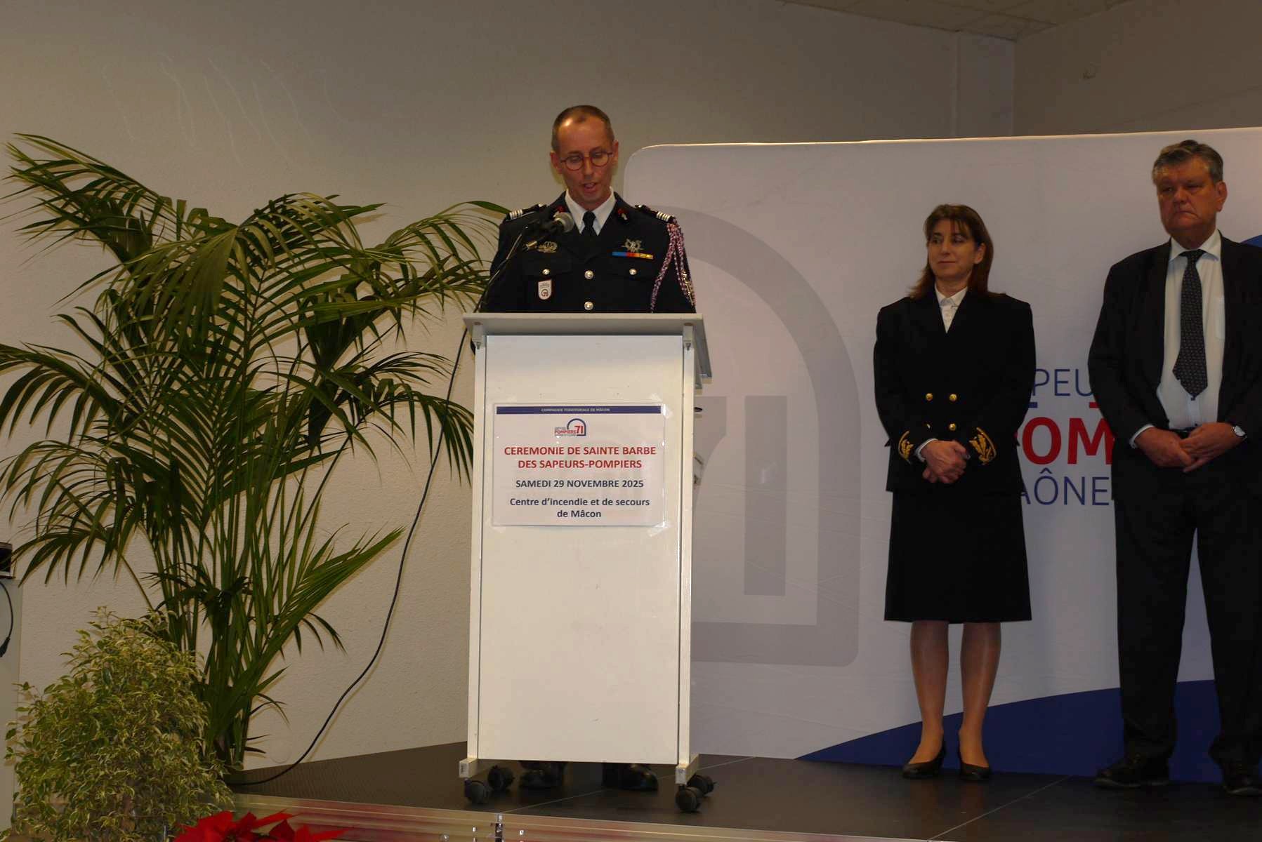 Ce samedi 29 novembre, le Centre d’Incendie et de Secours de Mâcon fêtait la traditionnelle Sainte-Barbe, consacrée à Barbara d'Héliopolis, dite patronne des sapeurs-pompiers. Après la cérémonie, cette après-midi était aussi l’occasion de féliciter et récompenser certains sapeurs et de revenir sur l’année écoulée.