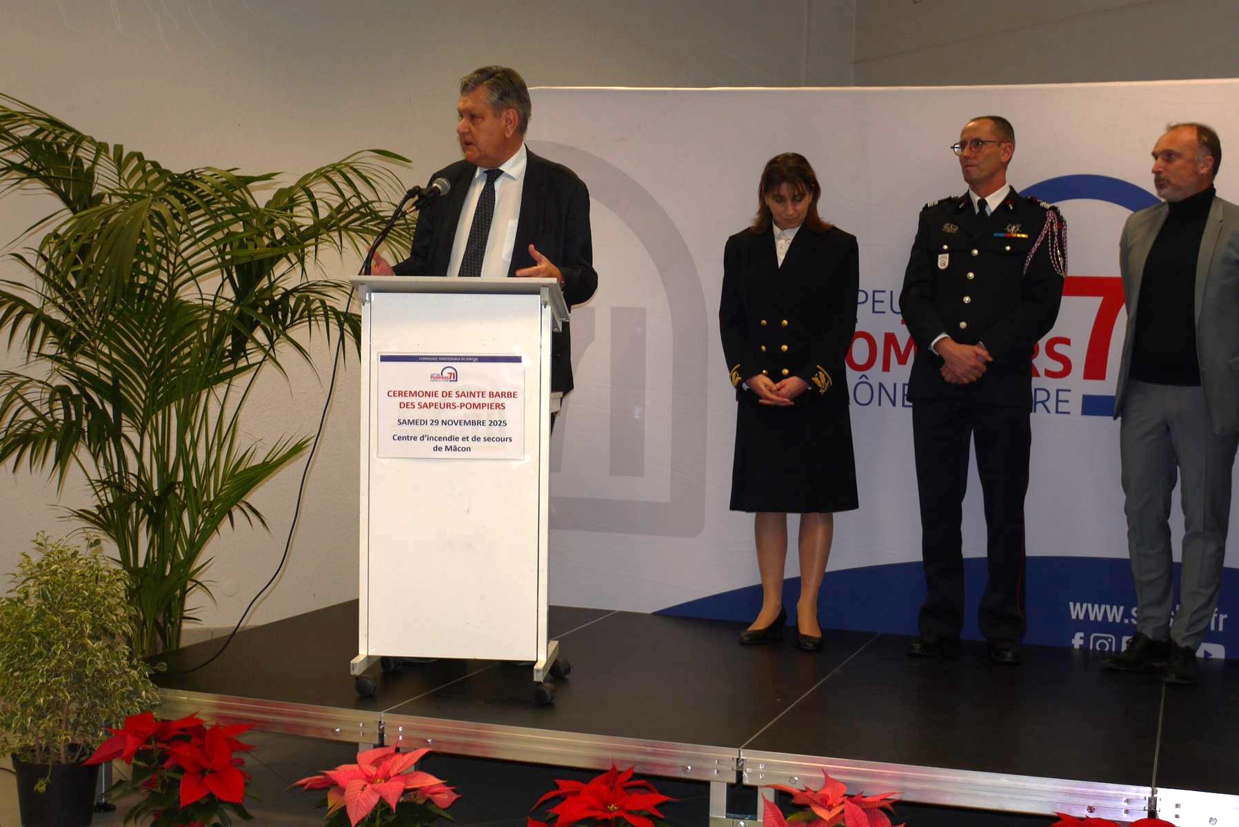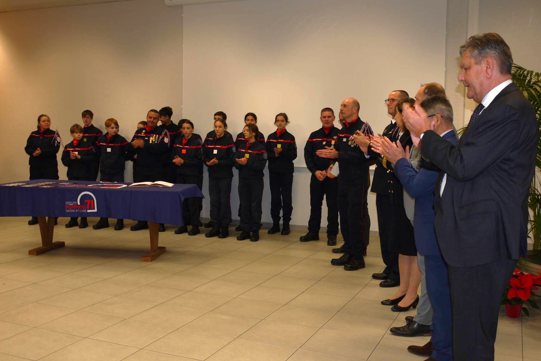 C’est dans un grand sérieux que la cérémonie s’est tout d’abord tenue sur le parking du centre de secours. Les sapeurs-pompiers, en présence de M. le maire Jean-Patrick Courtois ainsi que de la sous-préfète Agnès Chavanon, du maire de Sancé, Gilles Jondet, et du député Benjamin Dirx, se sont placés au garde à vous respectueux, sous les yeux attentifs des familles et amis des professionnels en uniforme. Tous ont été ensuite conviés à se rassembler au sein du bâtiment à l’étage afin d’assister à la remise des médailles et de poursuivre la commémoration.