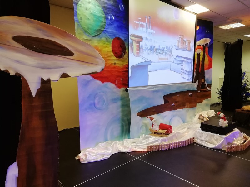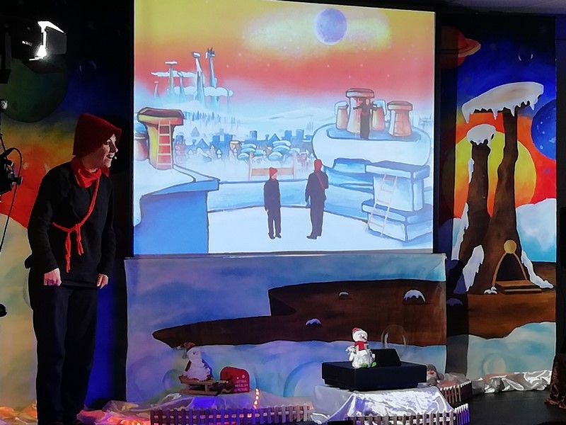 Impatients, les enfants se sont assis devant la scène, écoutant le mot d'accueil de Patrick Guilbert, responsable du territoire Marbé Perrières. Leur souhaitant de s'émerveiller au cours de cette représentation, dont l'idée était de « partir en voyage », mais surtout de ramoner toutes les cheminées avant le passage du Père Noêl. Il a laissé très vite place aux comédiens, petits ramoneurs pour l'occasion. À différents moments de la représentation, les enfants ont été invités à intervenir, en imitant avec enthousiasme les gestes de la comédienne. Les enfants se sont laissé embarquer dans cette atmosphère féerique.